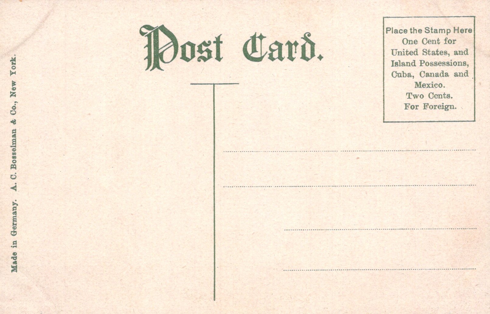 Postcard defect(s): Corner impression marks from where the card had once been slotted into a postcard album. Curved crease at the top edge.