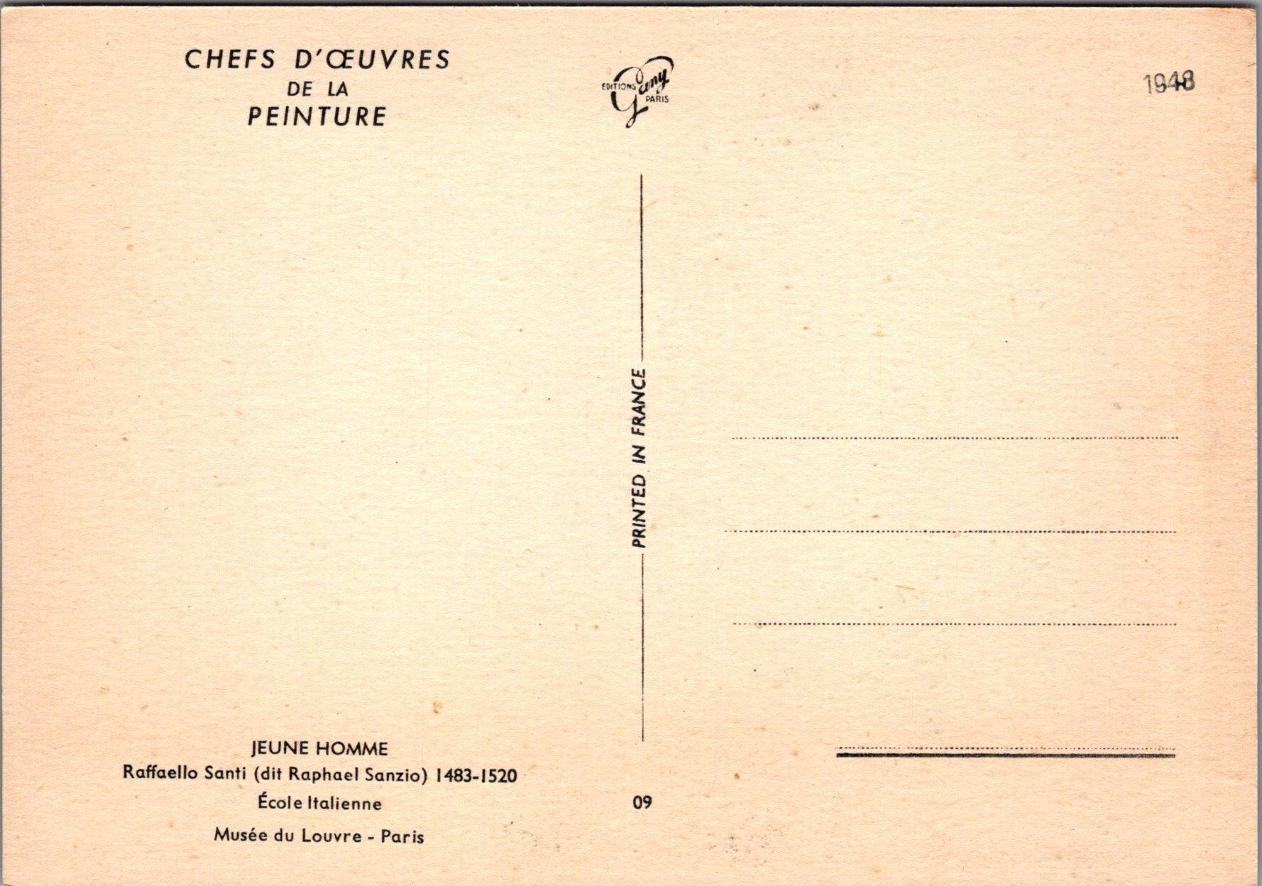 Mo's Ref:  Art Postcard - Jeune Homme, Raffaello Santi, Louvre Museum, Paris SW10336