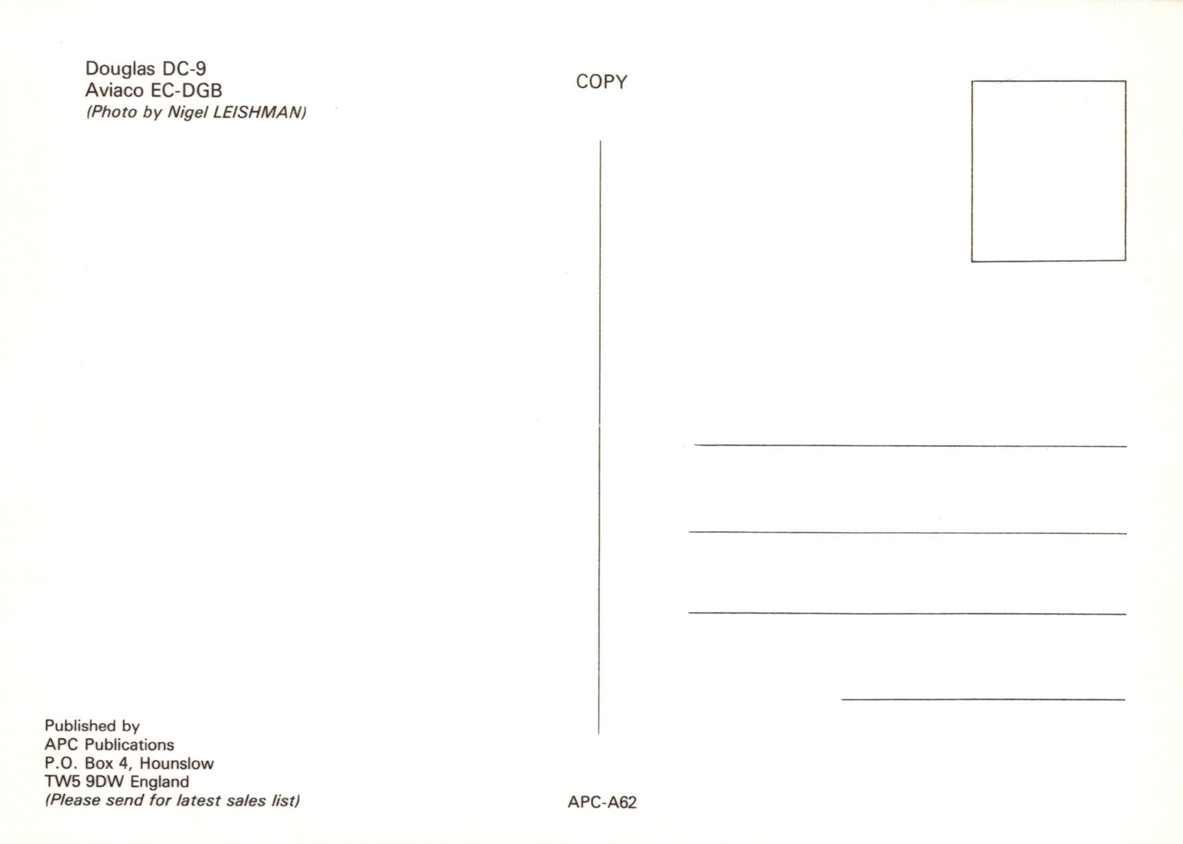 This is an Aviation Postcard - Douglas DC-9 Aviaco EC-DGB Aeroplane SW20697
