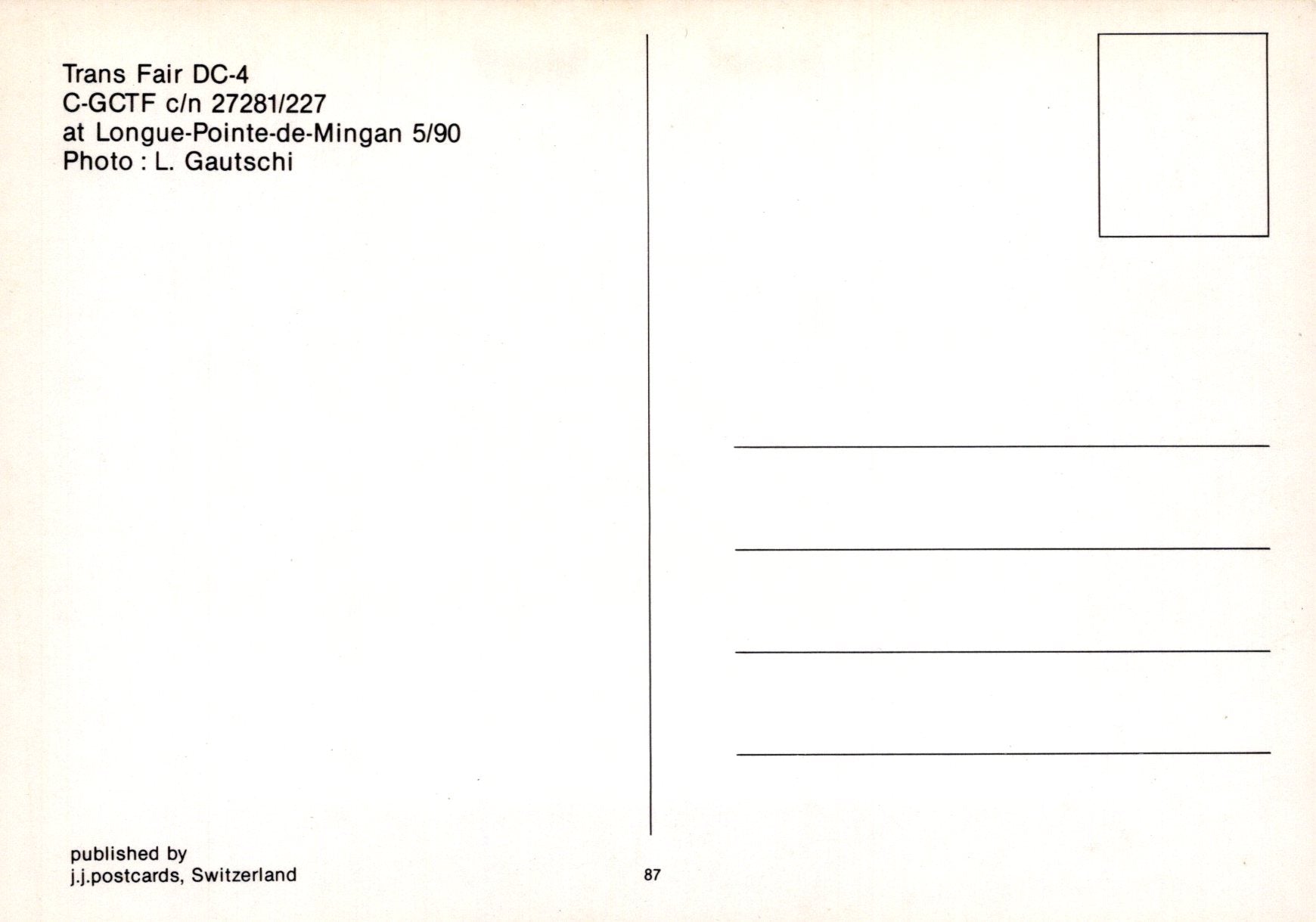 This is an Aviation Postcard - Trans Fair DC-4 C-GCTF Aeroplane SW20696