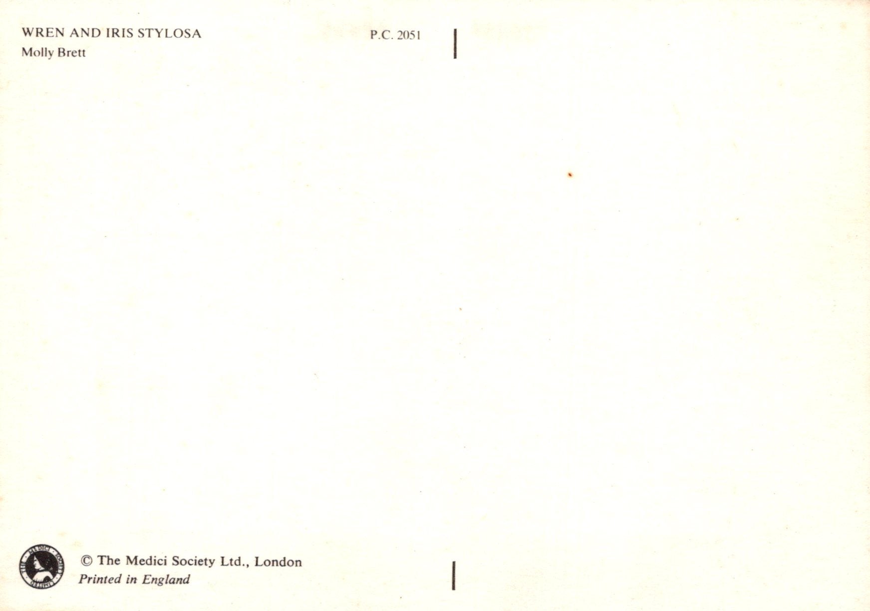 This is an Art Postcard - Molly Brett, Wren and Iris Stylosa  VT444