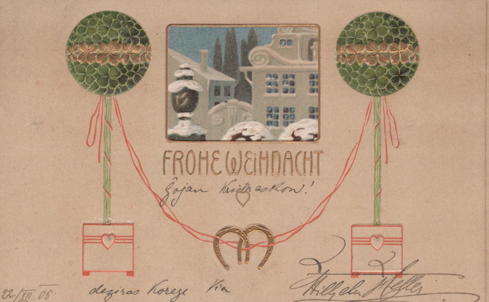 This is a Christmas Embossed Postcard - Frohe Weihnacht Sleigh Winter Scene German 1906 - SW20281
