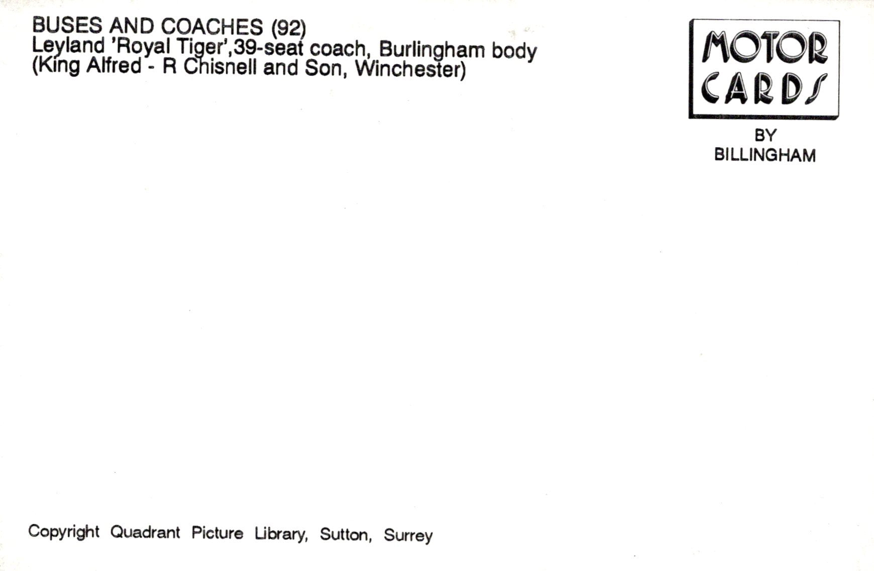 This is a Road Transport Postcard - Leyland 'Royal Tiger' 39 Seat Coach, Burlingham Body. King Alfred - R.Chisnell and Son, Winchester  SW18979