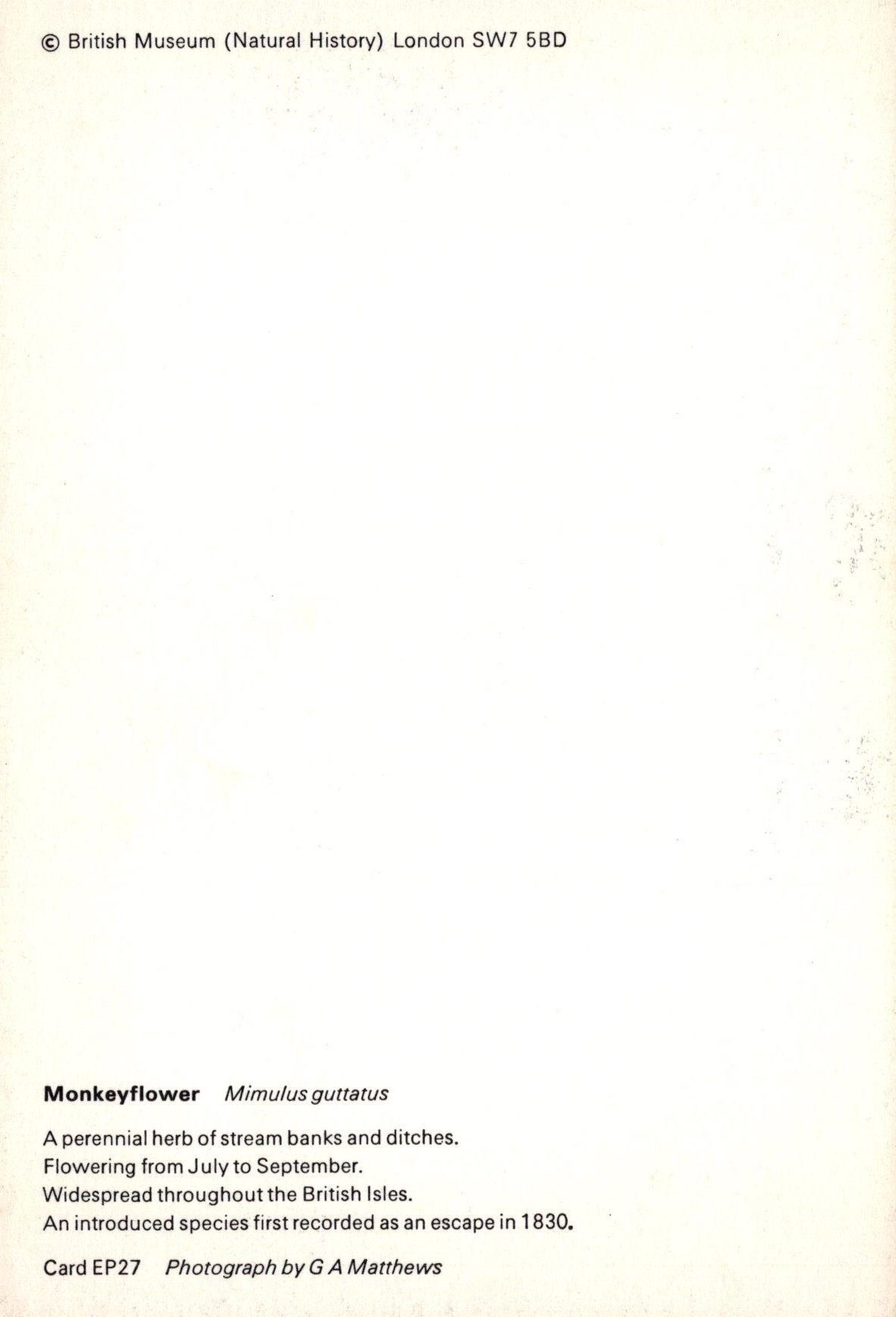 Mo's Ref: Nature Postcard - Monkeyflower, Mimulus Guttatus SW20331