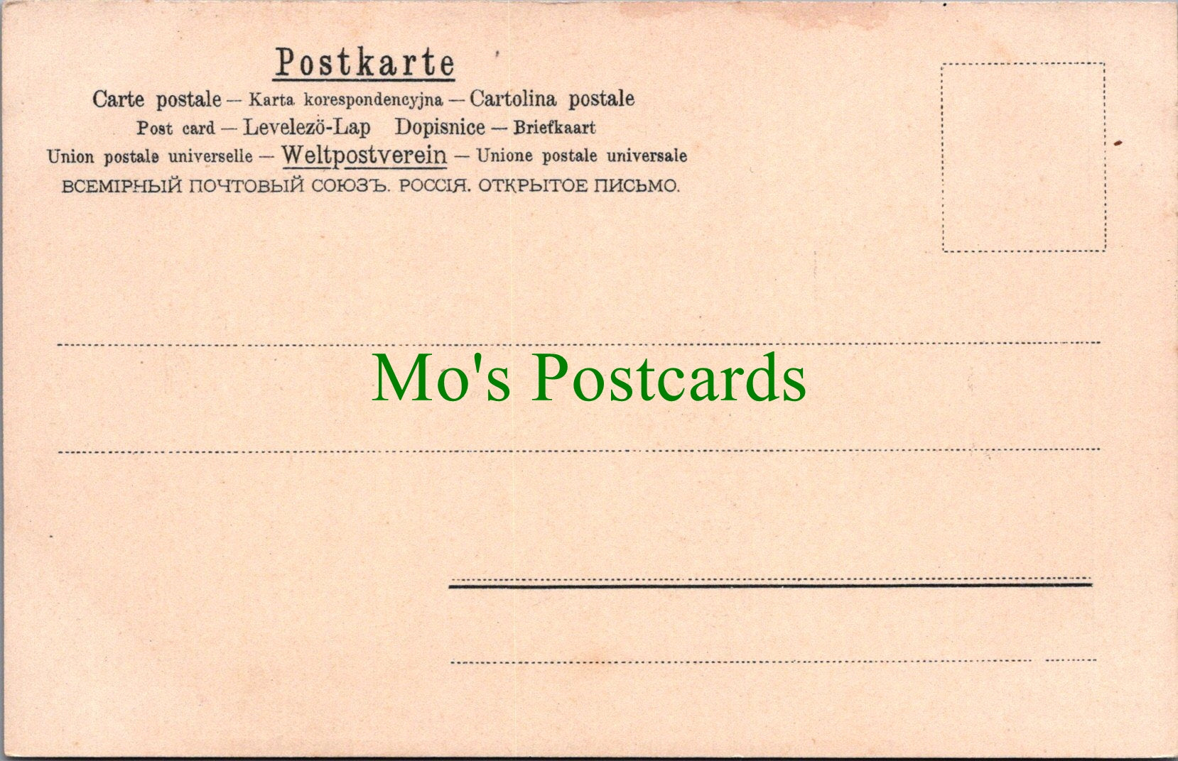 All of our postcards are posted to you inside a plastic sleeve and a board backed envelope which will be marked 'Please do not bend'. The 'Mo's Postcards' watermark does not appear on the actual postcard'.