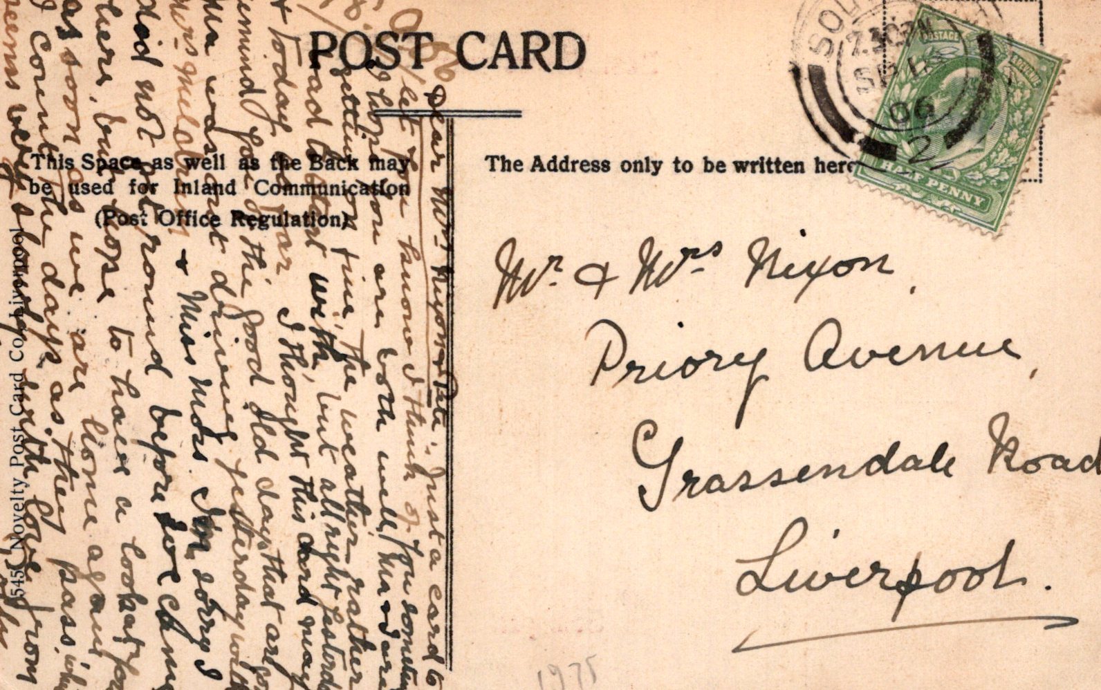 Postcard size: Standard. Posted in 1906