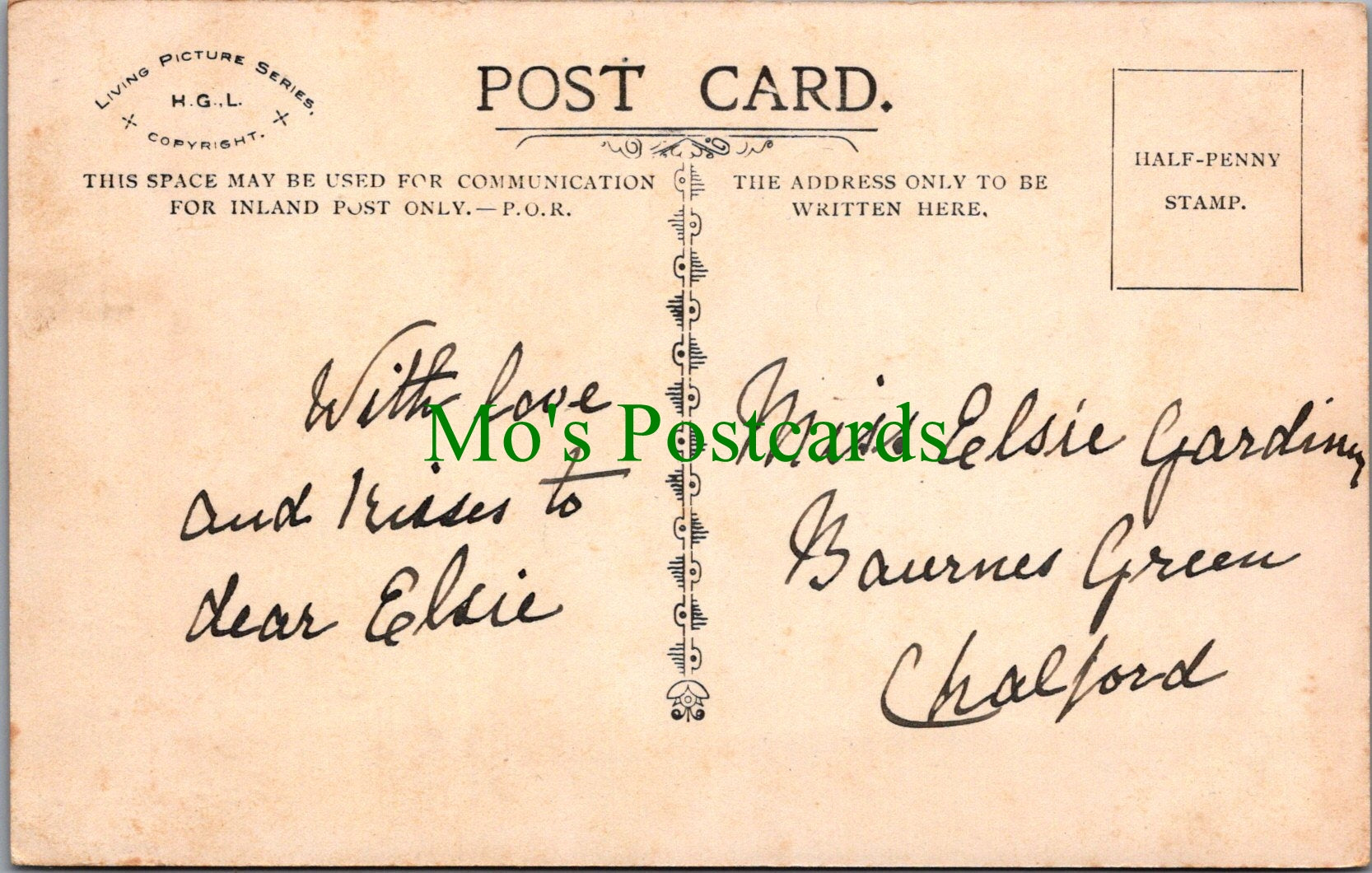 All of our postcards are posted to you inside a plastic sleeve and a board backed envelope which will be marked 'Please do not bend'. The 'Mo's Postcards' watermark does not appear on the actual postcard'.