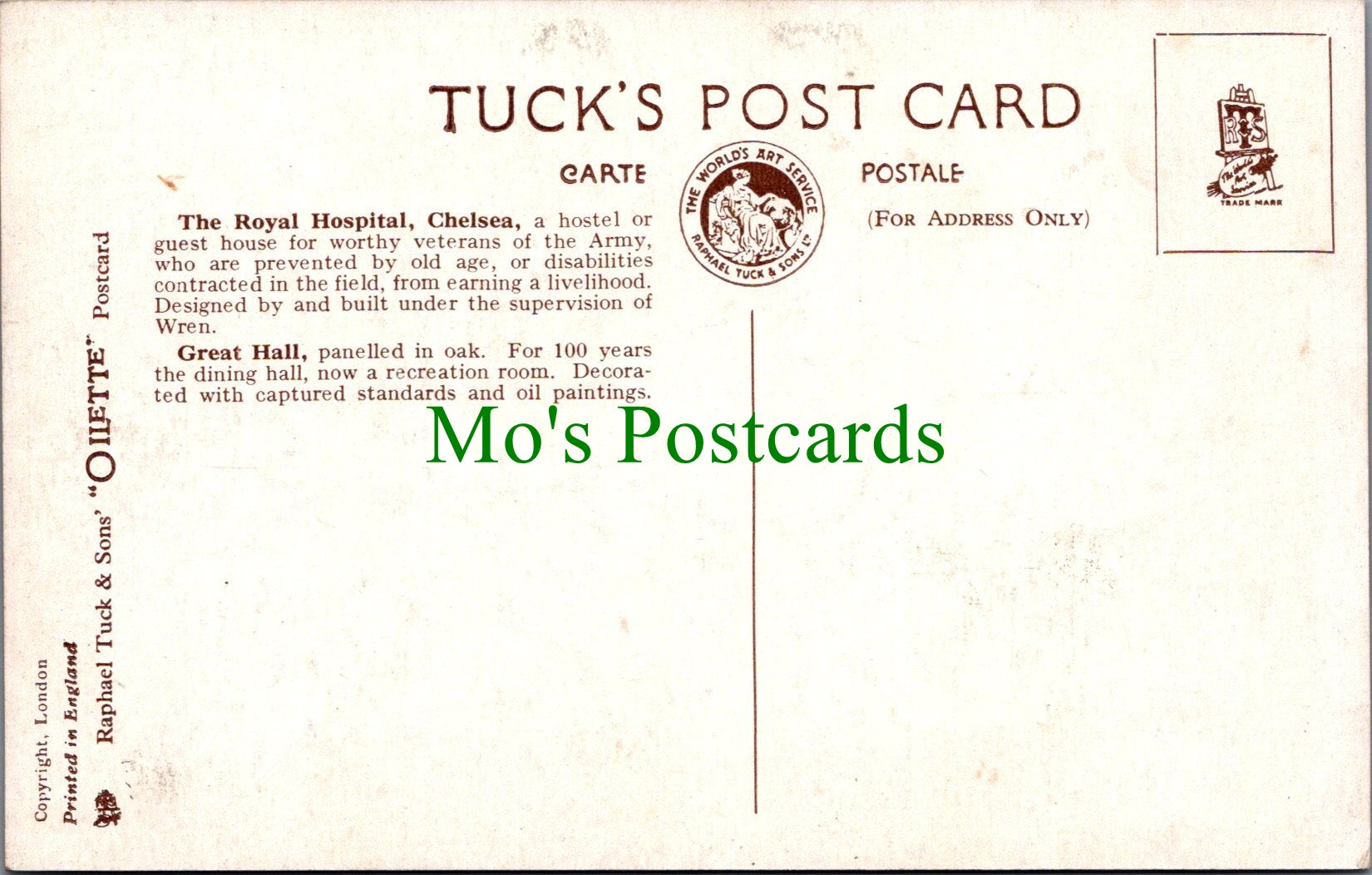 The 'Mo's Postcards' watermark does not appear on the actual postcard'.