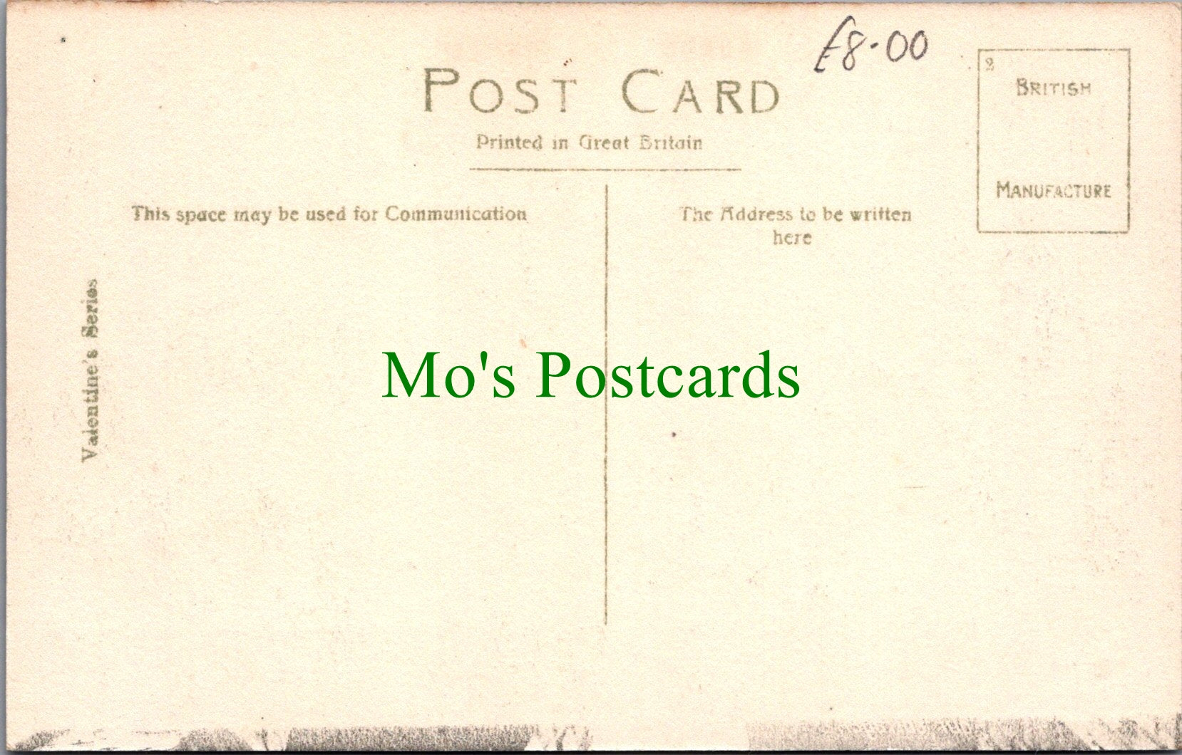 All of our postcards are posted to you inside a plastic sleeve and a board backed envelope which will be marked 'Please do not bend'. The 'Mo's Postcards' watermark does not appear on the actual postcard'.