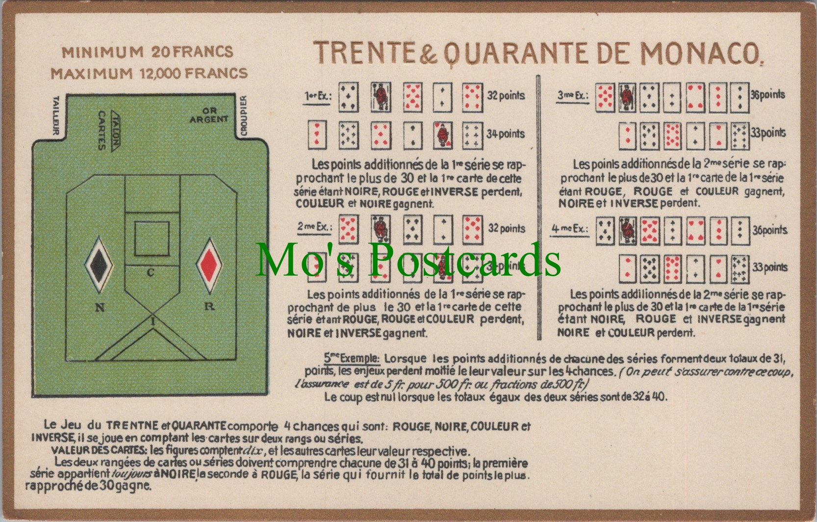 Embossed Casino Postcard - Trente & Quarante De Monaco Ref.SW9882