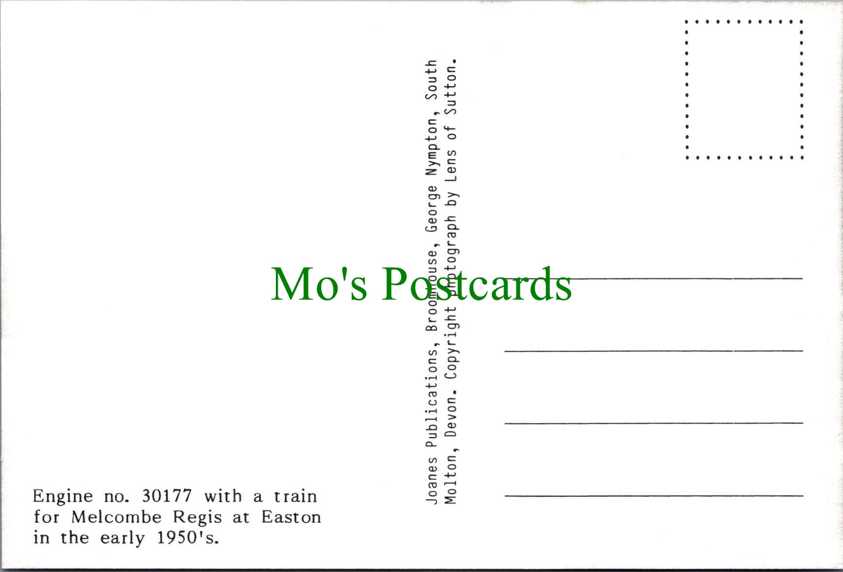 This is a postcard of Engine No 30177 With a Train For Melcombe Regis at Easton in The 1950's