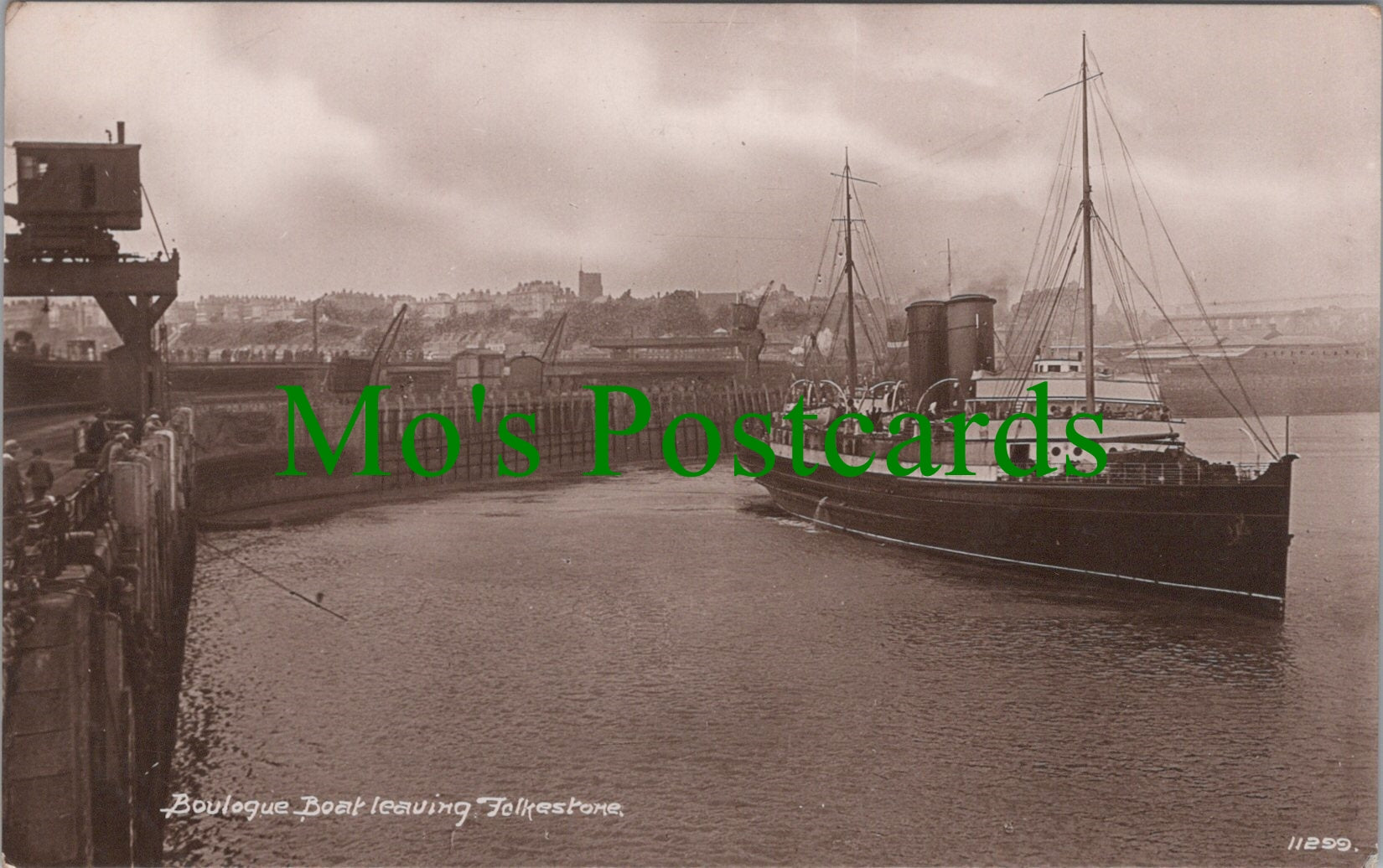 This is a postcard of Boulogne Boat Leaving Folkstone, Kent