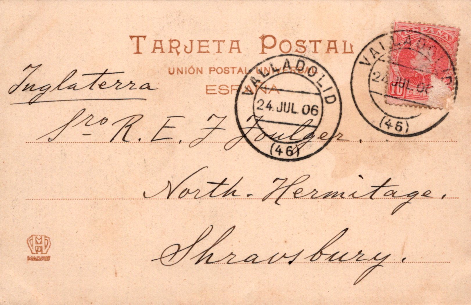 Postcard size: Standard. Posted in 1906