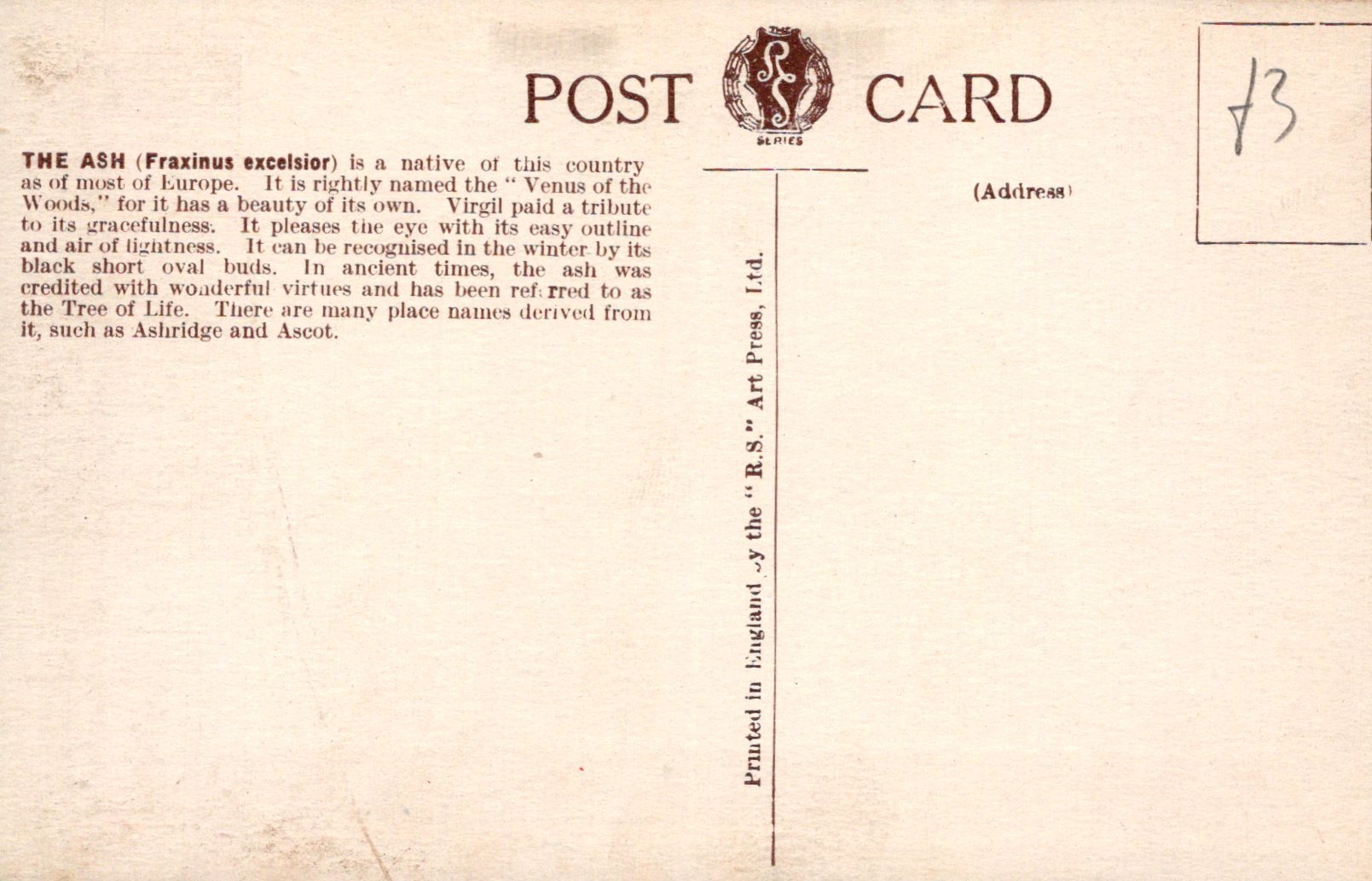 Mo's Ref: Nature Postcard - Trees, The Ash Tree, Fraxinus Excelsior VT432