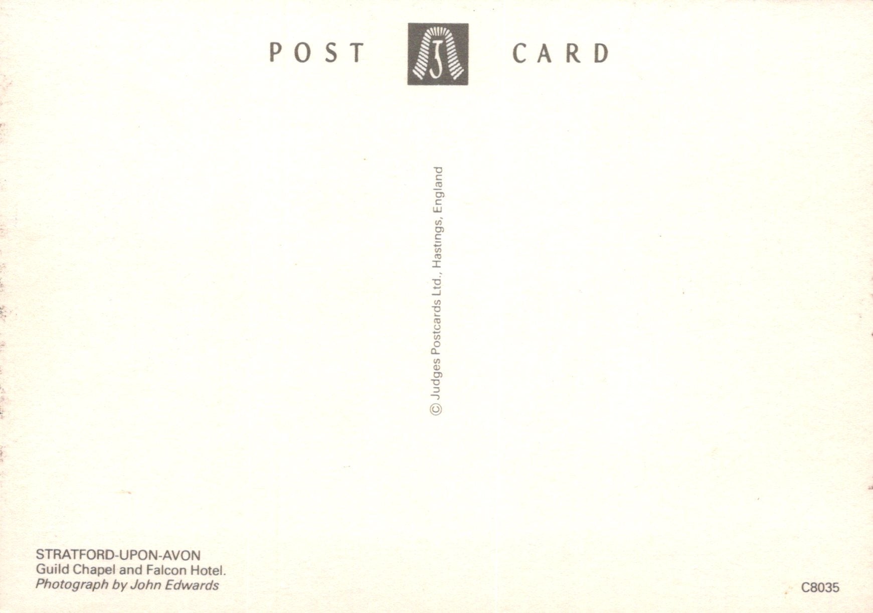 This is a Warwickshire Postcard - Stratford-Upon-Avon Guild Chapel and Falcon Hotel VT598