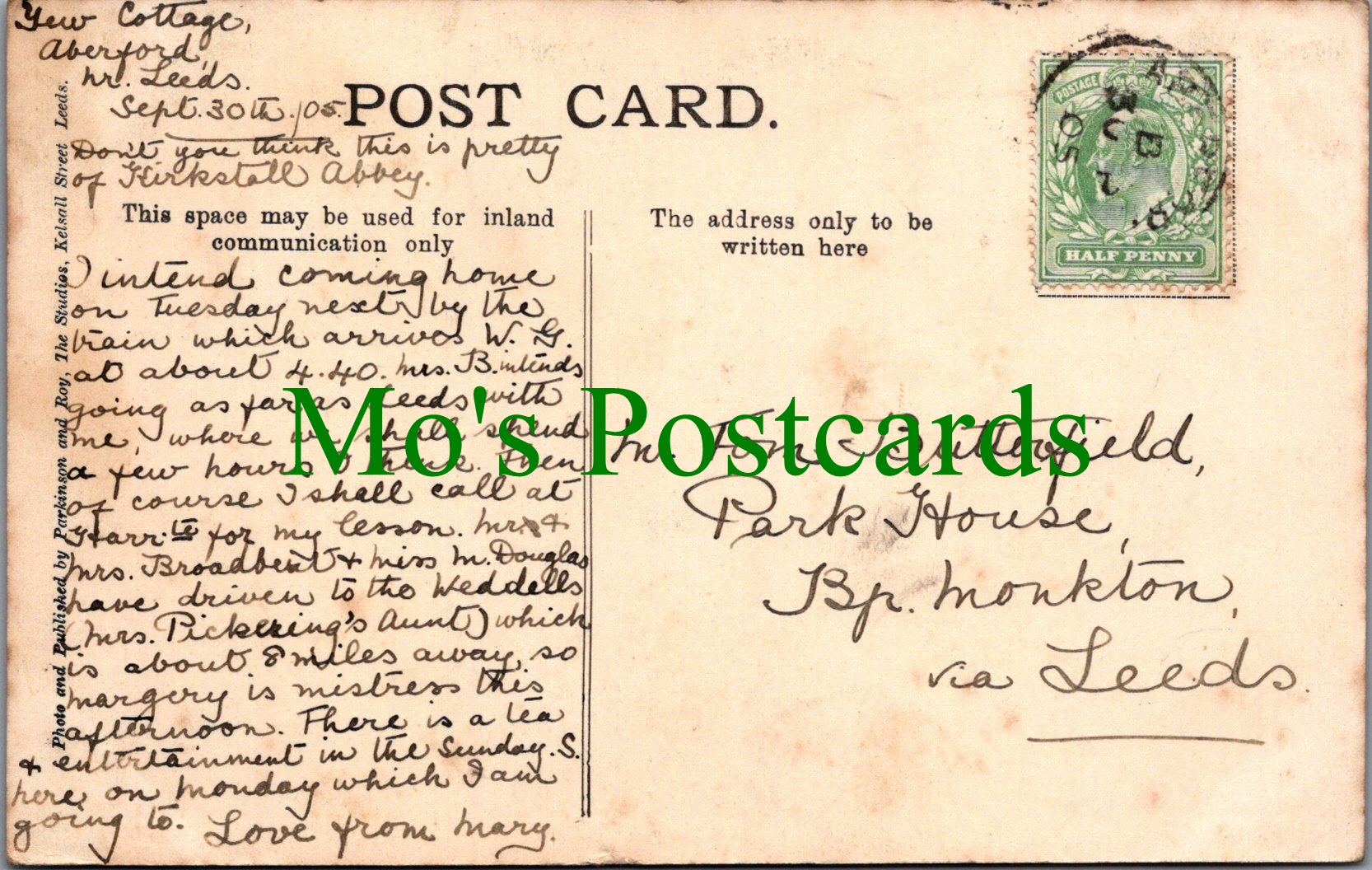 This is a postcard of Kirkstall Abbey, Leeds, Yorkshire