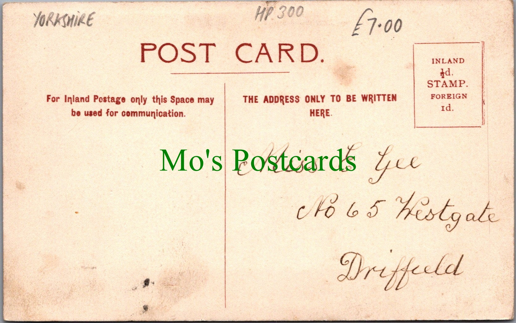 The 'Mo's Postcards' watermark does not appear on the actual postcard'.