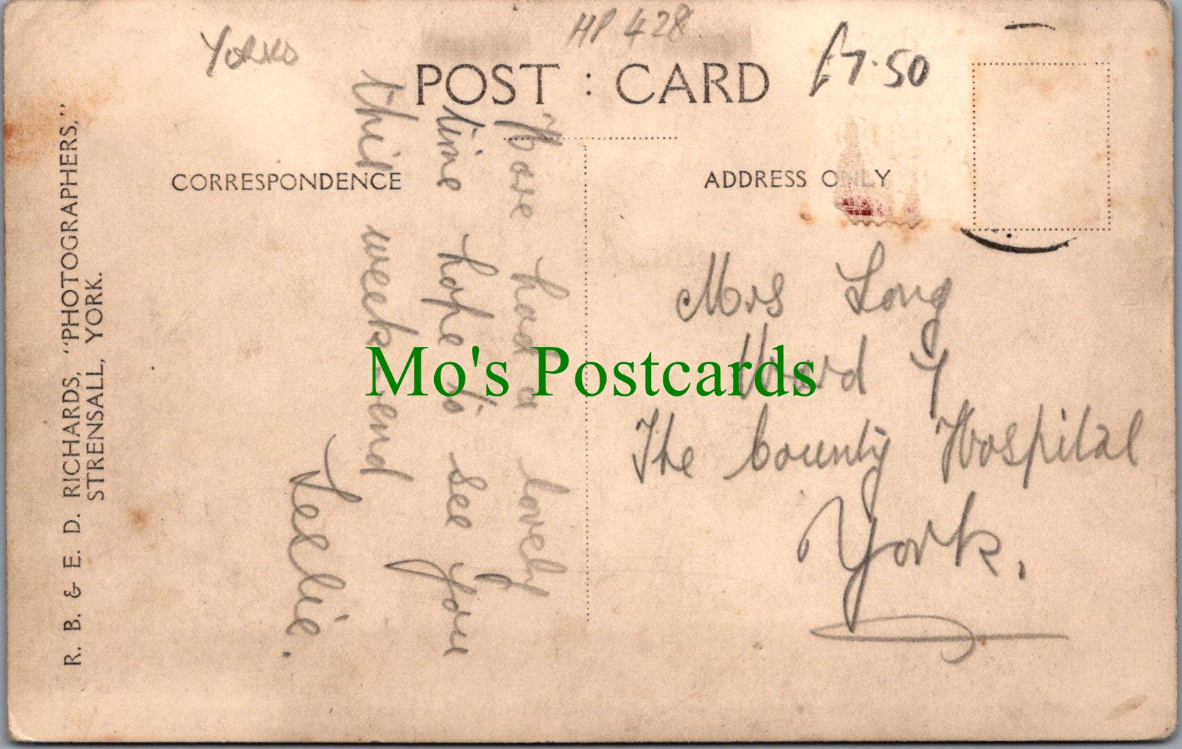 The 'Mo's Postcards' watermark does not appear on the actual postcard'.