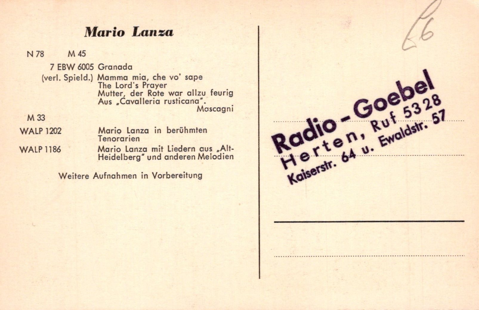 Mo's Ref: Film Star Postcard - Hollywood Actor Mario Lanza SW18633