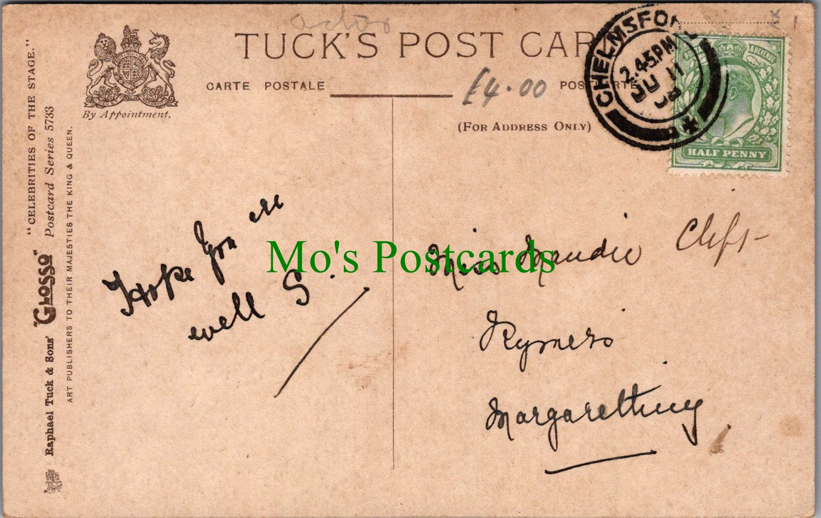 All of our postcards are posted to you inside a plastic sleeve and a board backed envelope which will be marked 'Please do not bend'. The 'Mo's Postcards' watermark does not appear on the actual postcard'.