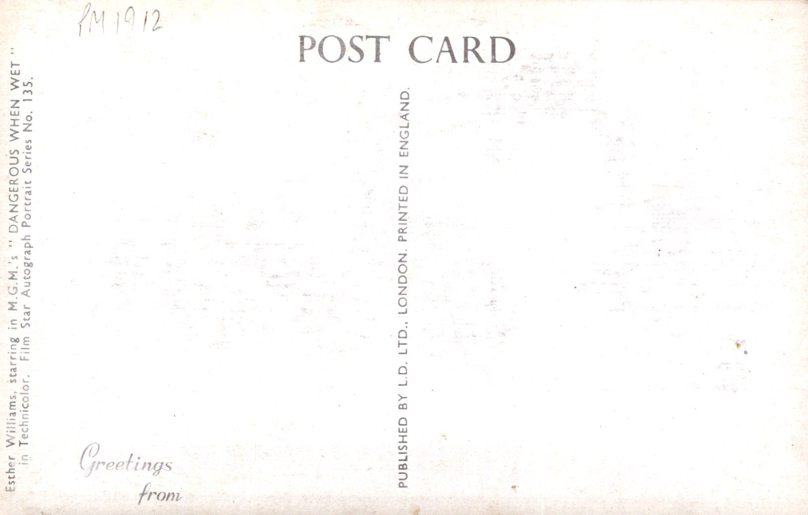 This is a Film Star Postcard - Actress Esther Williams, "Dangerous When Wet" VT12