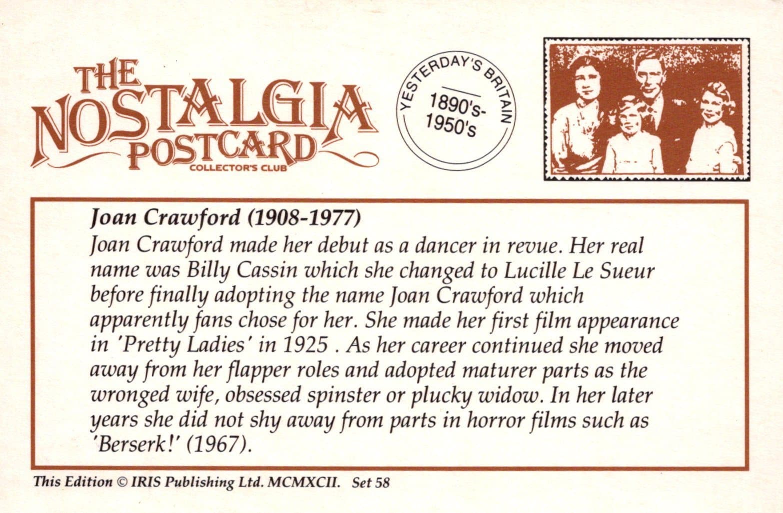 Nostalgia Postcard - Film Stars - Actress and Dancer Joan Crawford SW827