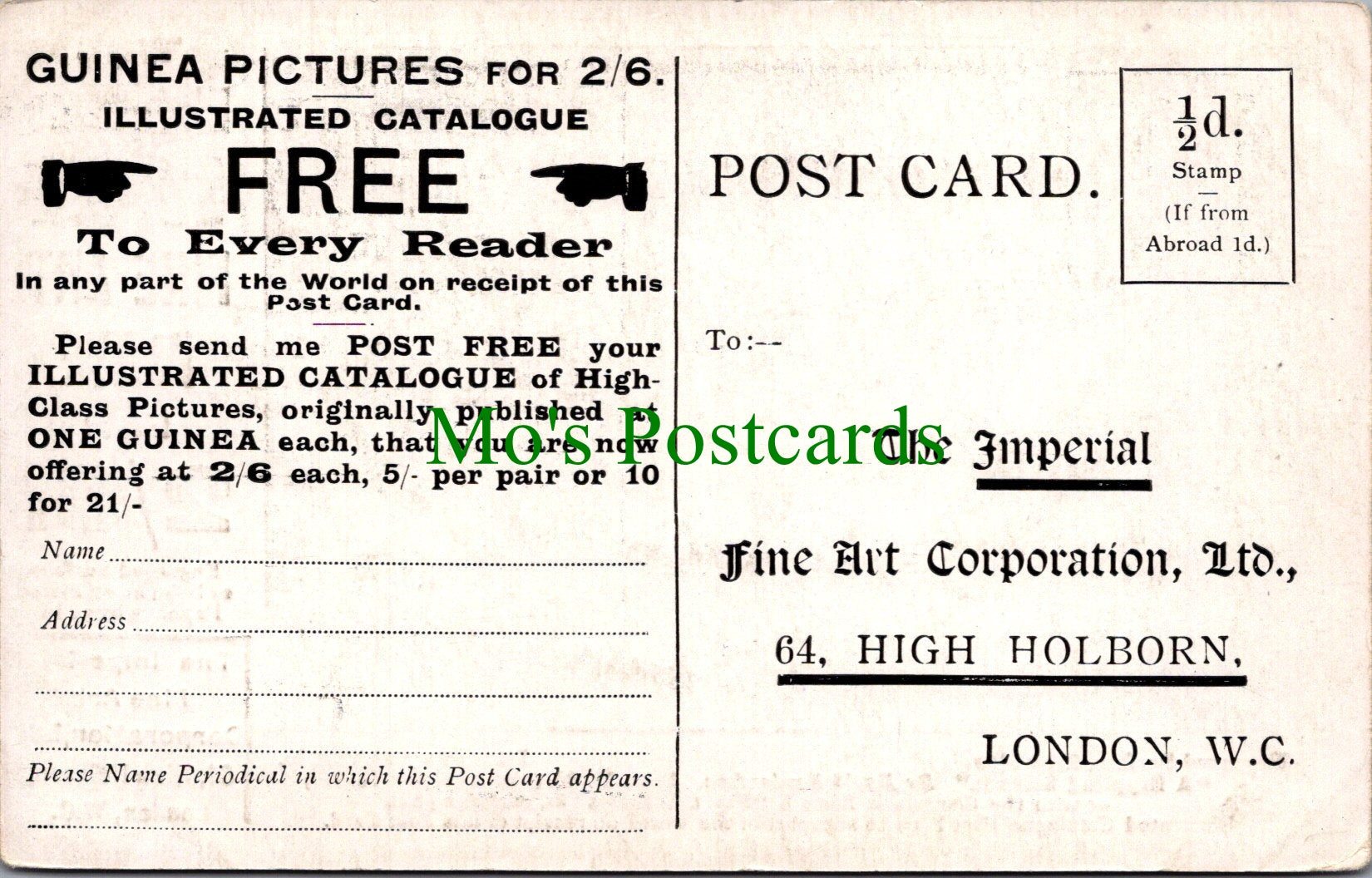 Mo's Ref:  Advertising Postcard - The Imperial Fine Art Corporation Ltd, London SW11784