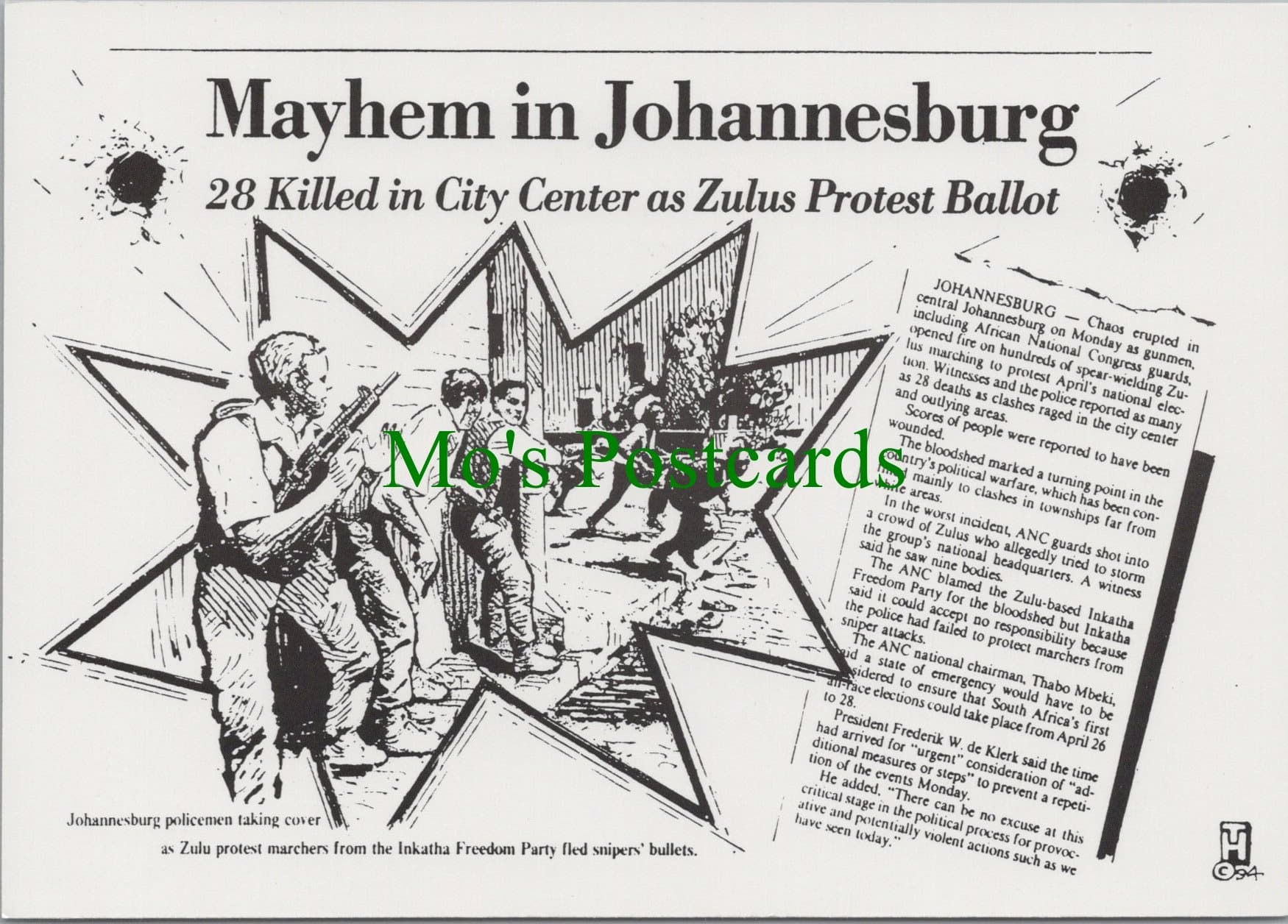 Mo's Postcards offers for sale a South Africa Postcard - Mayhem in Johannesburg. 28 Killed in City Center as Zulus Protest Ballot.