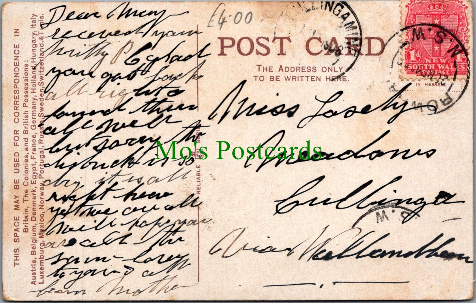 All of our beautiful postcards are posted to you inside a plastic sleeve and a board backed envelope which will be marked 'Please do not bend'. The 'Mo's Postcards' watermark does not appear on the actual postcard'.