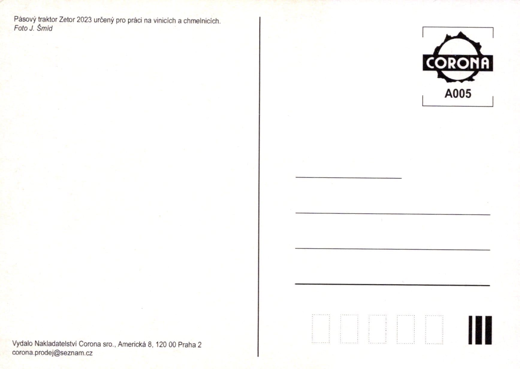 Farming Postcard - Pasovy Traktor Zetor 2023 Urceny Pro Praci Na Vinicich a Chmelnicich SW235