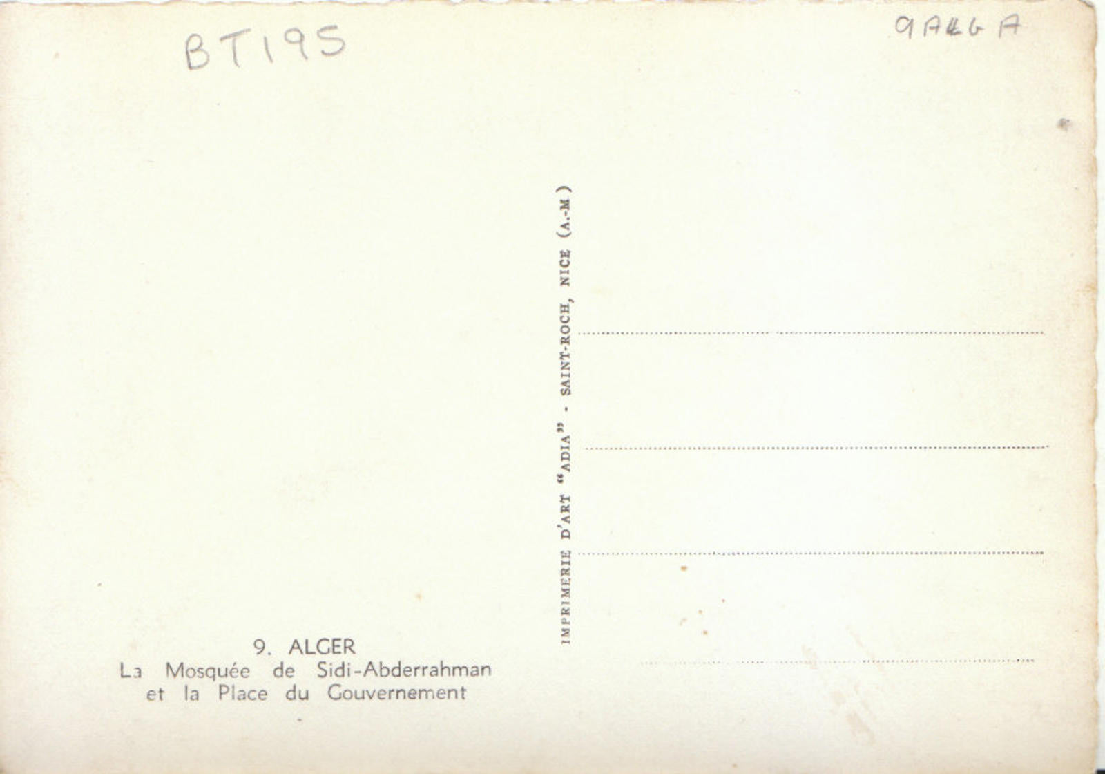 Postcard Description: Algeria Postcard - Alger, La Mosquee De Sidi-Abderrahman
