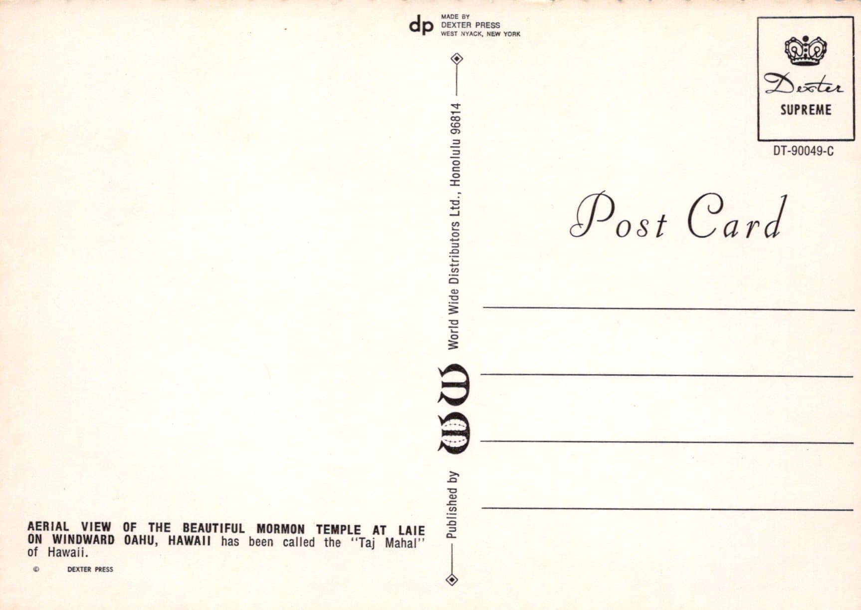 America Postcard - Aerial View of Mormon Temple at Laie on Windward Oahu, Hawaii SW252