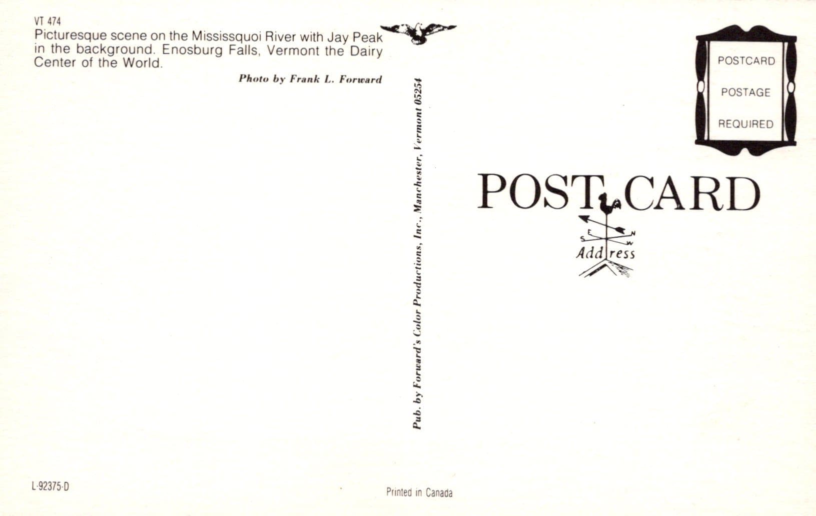 America Postcard - Mississquoi River, Enosburg Falls, Vermont SW959