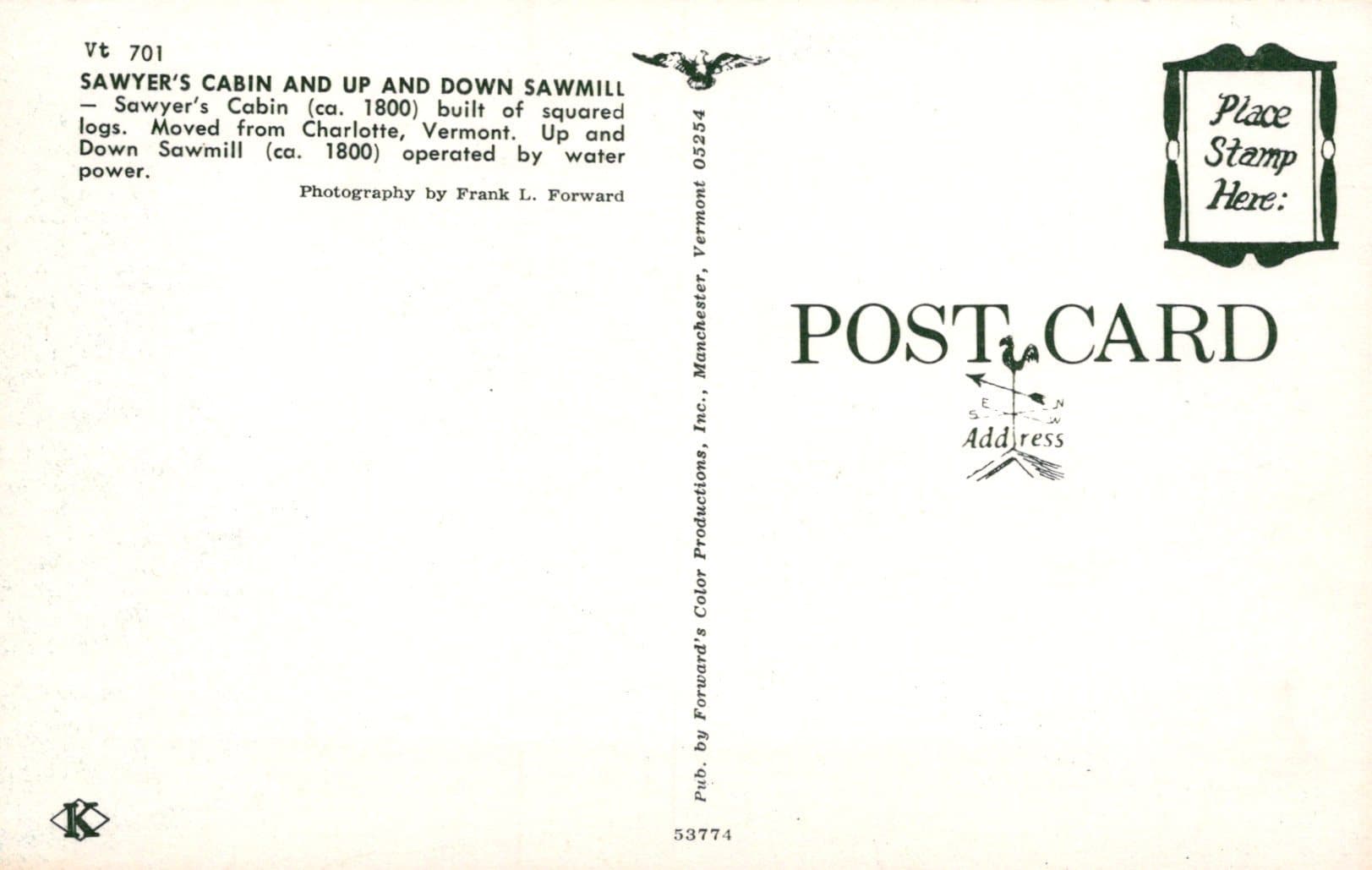 America Postcard - Sawyer's Cabin and Up and Down Sawmill, Vermont SW949