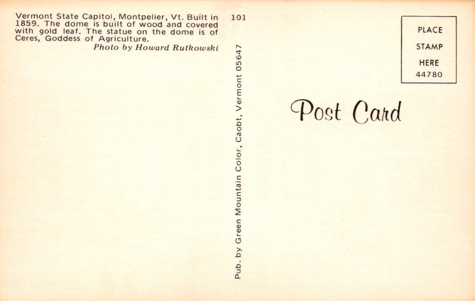 America Postcard - Vermont State Capitol, Montpelier, Vermont SW233