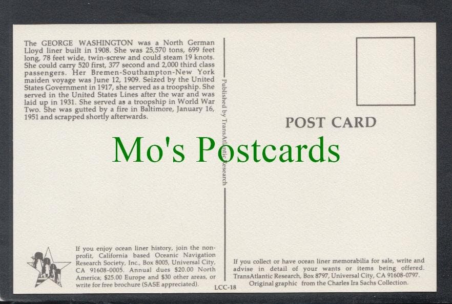 Mo's Postcards offers for sale a Shipping Postcard - The George Washington Liner.