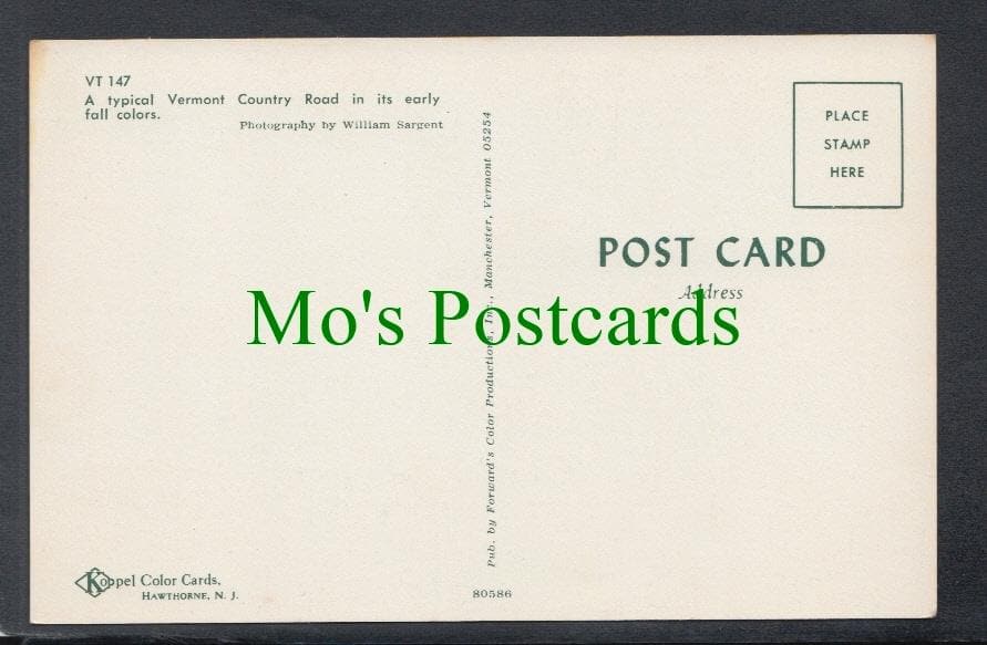 Mo's Postcards offers for sale a Vermont Country Road in Fall Colors.
