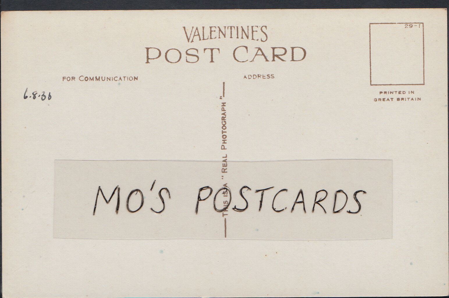 The 'Mo's Postcards' watermark does not appear on the actual postcard'.