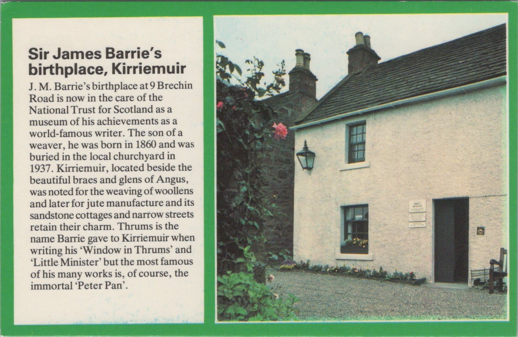 Mo's Postcards offers for sale a postcard showing Sir James Barrie's Birthplace, Kirriemuir.