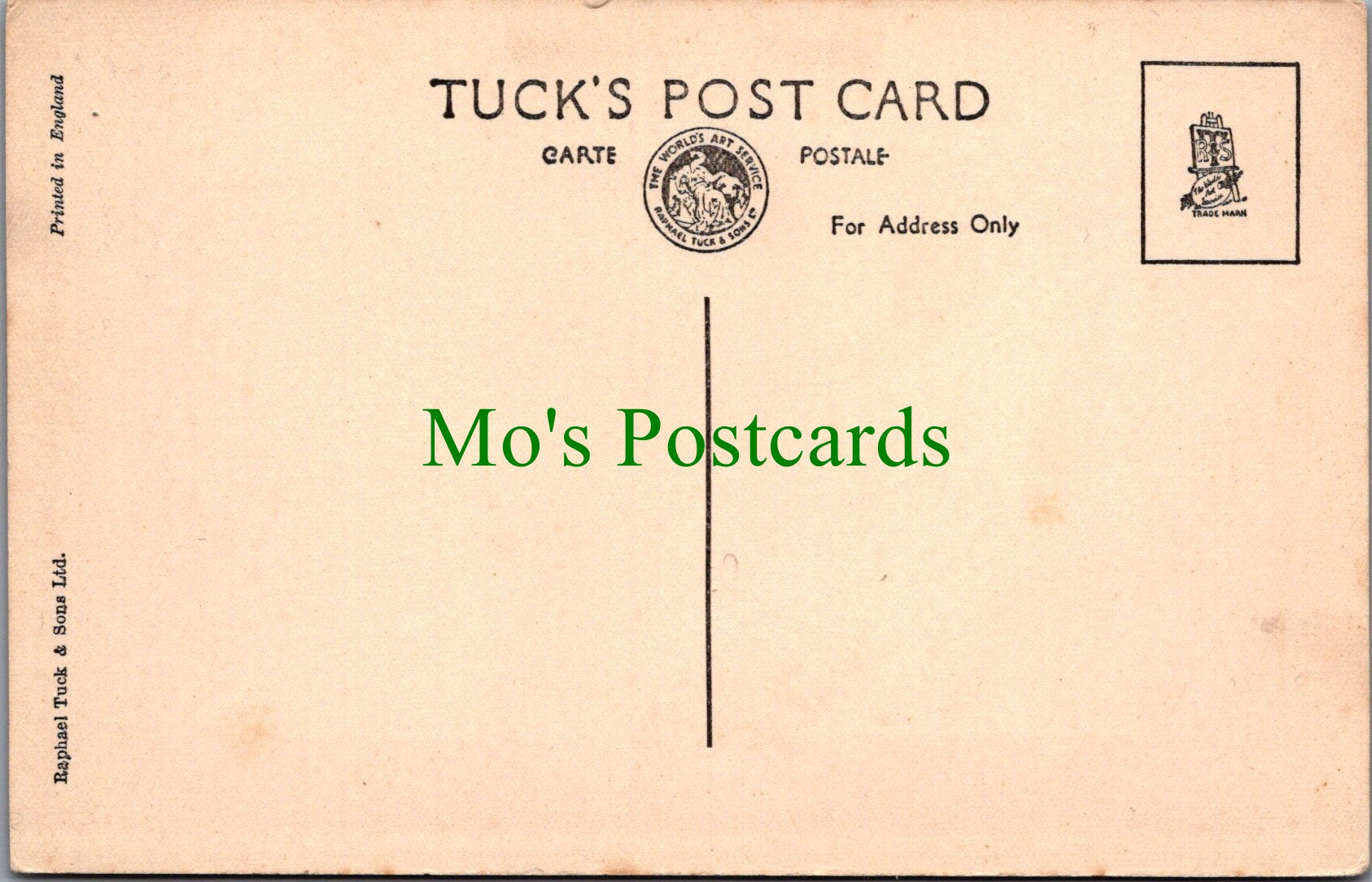 All of our postcards are posted to you inside a plastic sleeve and a board backed envelope which will be marked 'Please do not bend'. The 'Mo's Postcards' watermark does not appear on the actual postcard'.