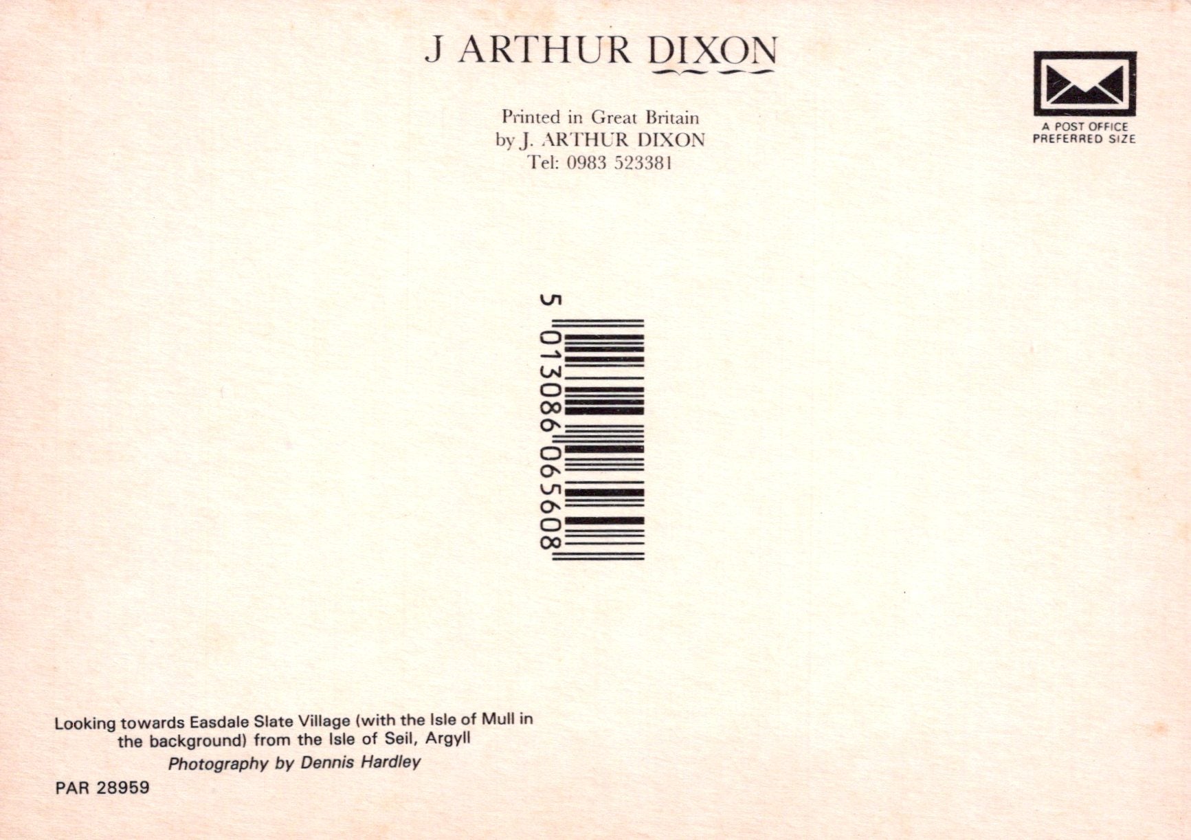 Back of a book or product packaging with J Arthur Dixon branding and a barcode.