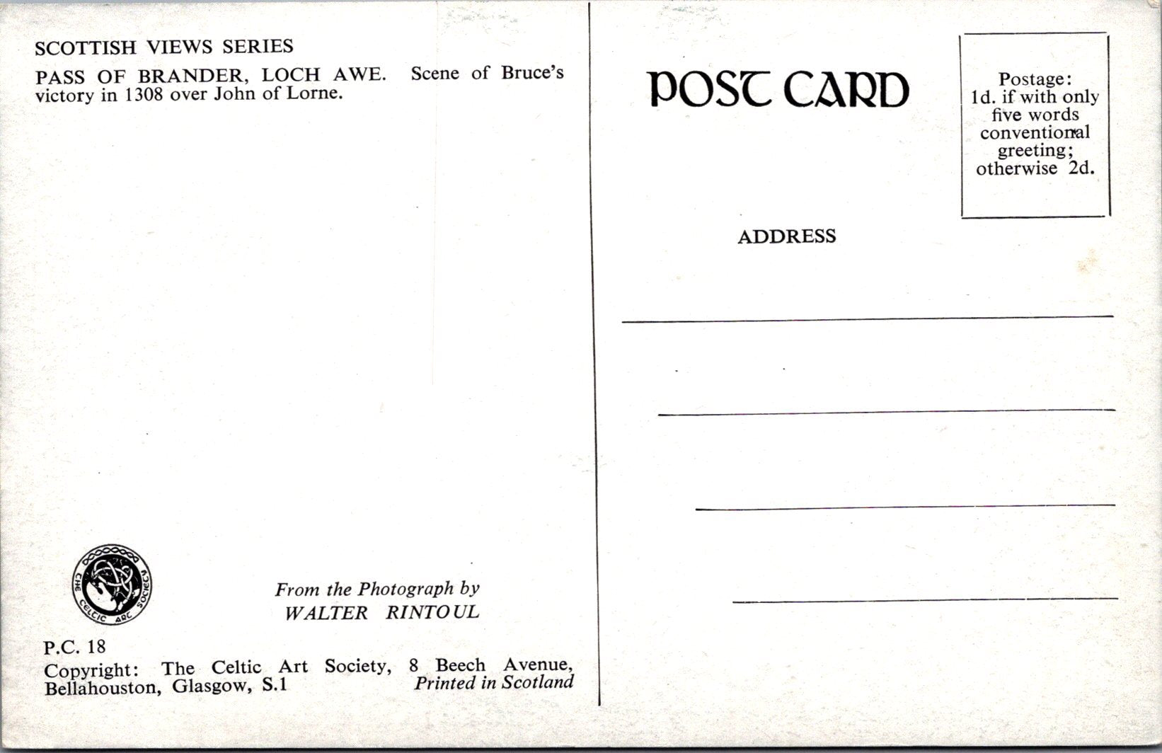 Mo's Ref:  Scotland Postcard - Pass of Brander, Loch Awe SW10734