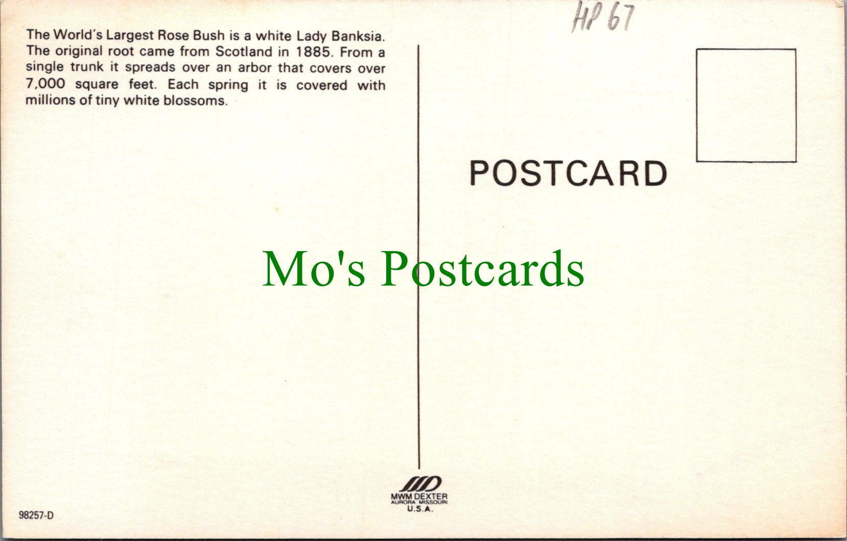 Mo's Ref:  America Postcard - Tombstone, Arizona, World's Largest Rosebush HP67