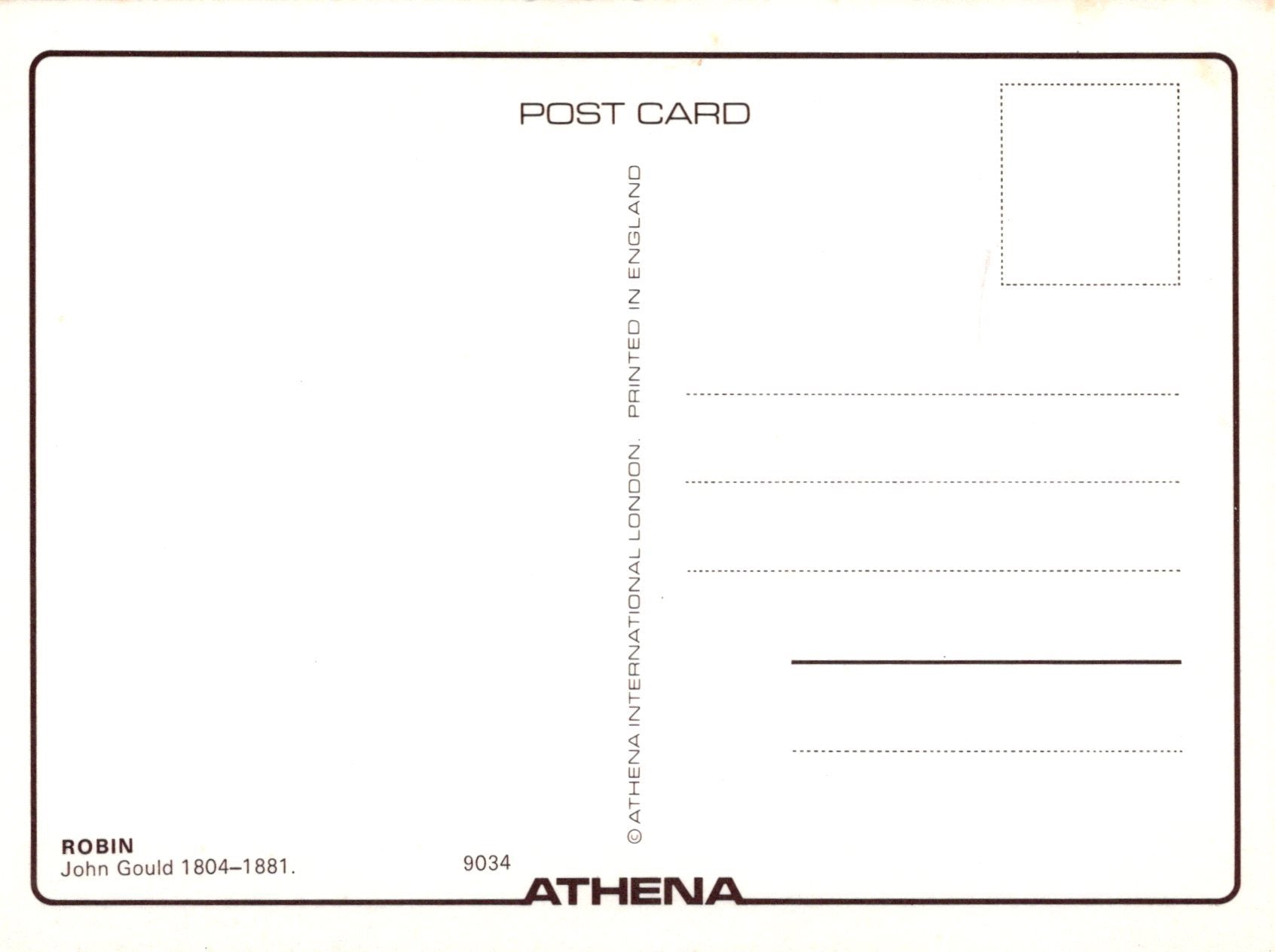 Mo's Ref:  Animal Art Postcard - Birds, Robin, Artist John Gould  SW20382