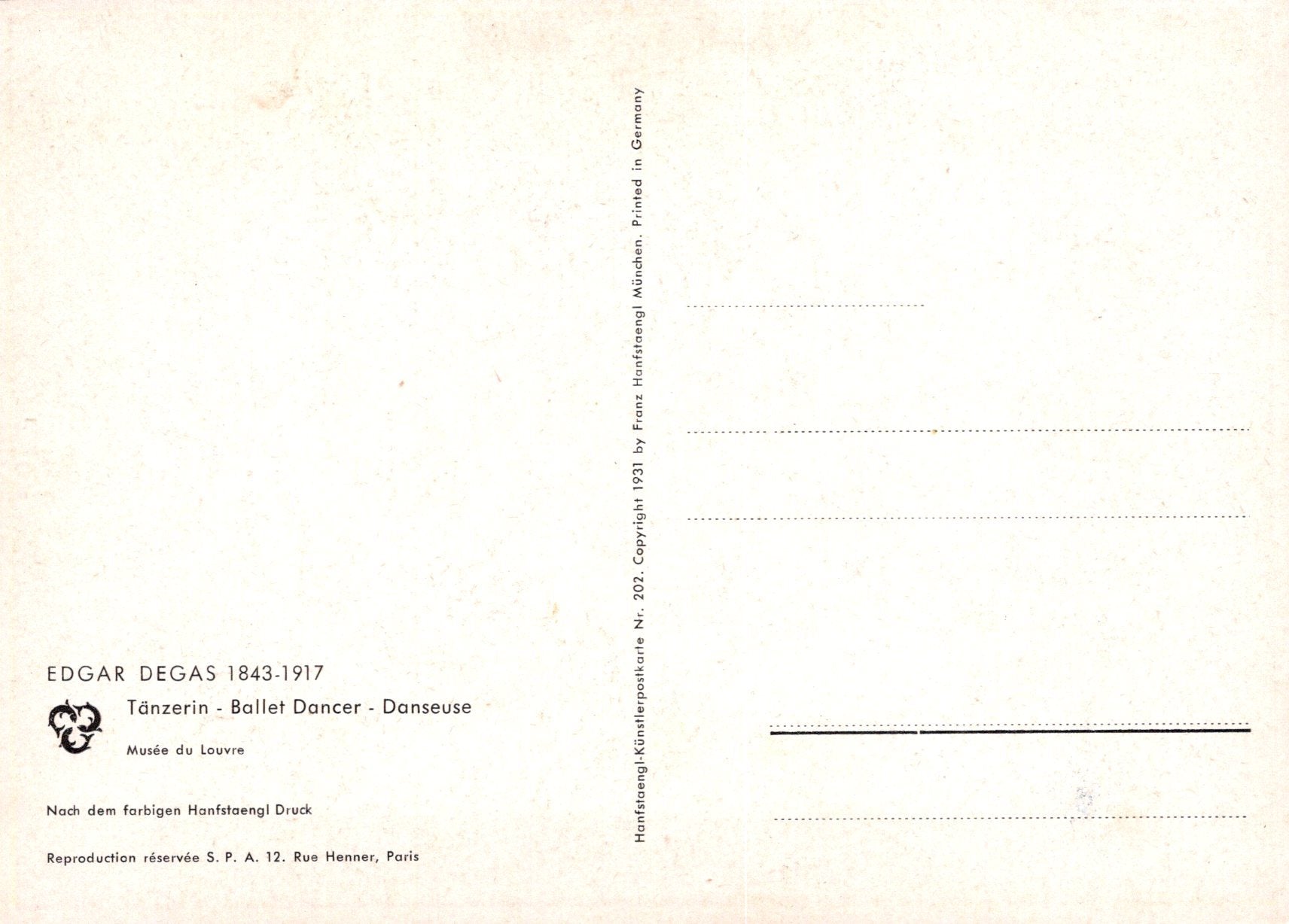 Mo's Ref:  Art Postcard - Edgar Degas, Tanzerin, Ballet Dancer, Danseuse VT601