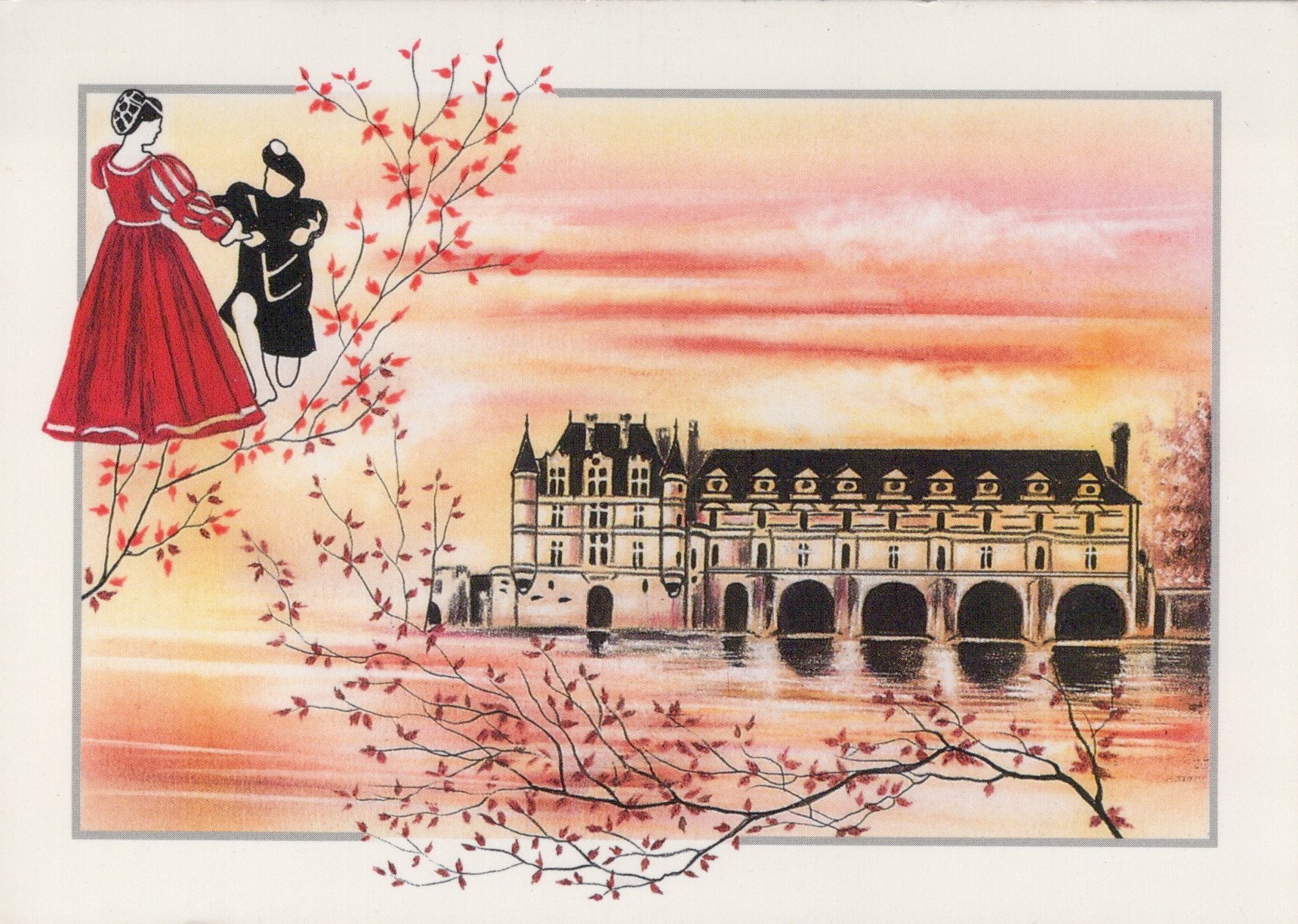 This is an Art Postcard - Le Chateau De Chenonceau. Illustration by Jacky Martin SW19580
