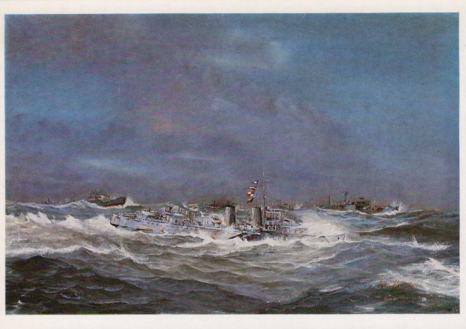 • Load image into Gallery viewer, Military Art Postcard - HMS Wallace, Conflict at Sea, John Hamilton RR22500