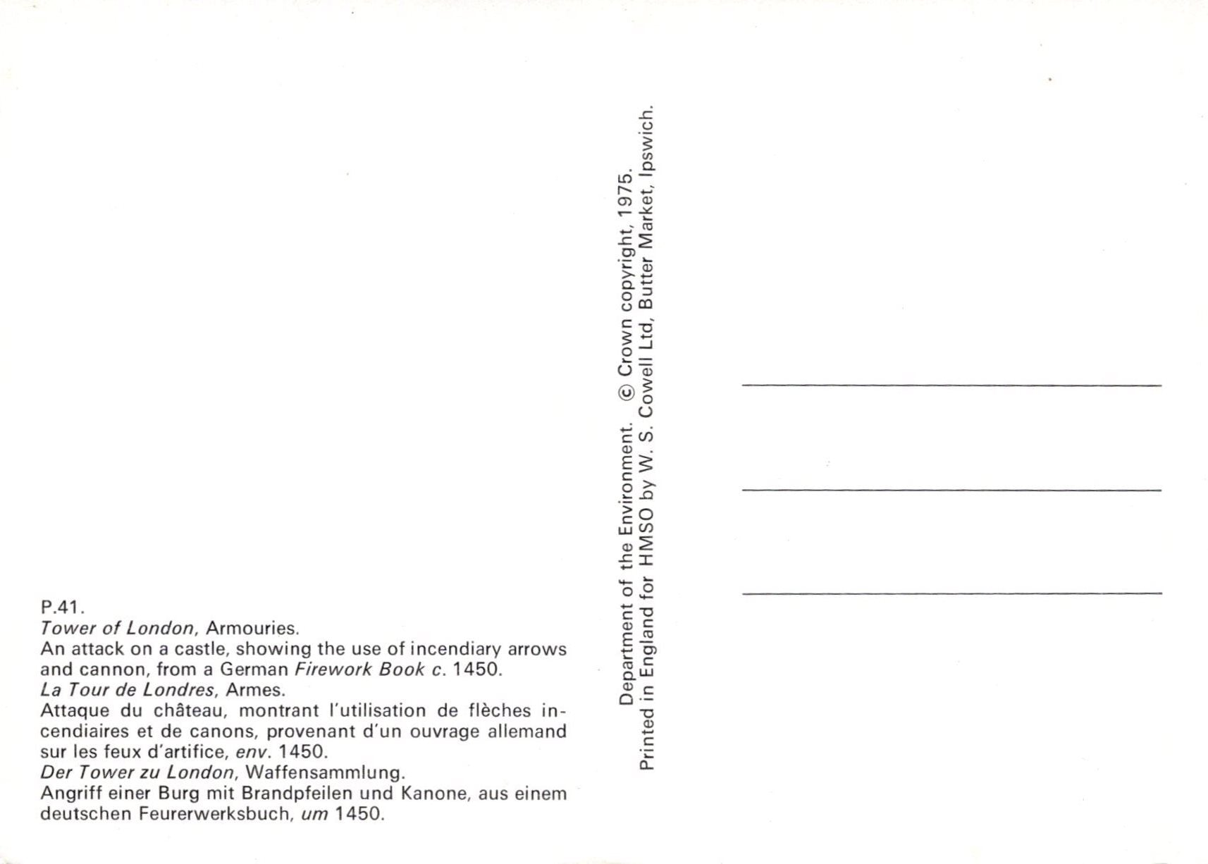 Mo's Ref: Military Art Postcard - Tower of London Armouries SW20351