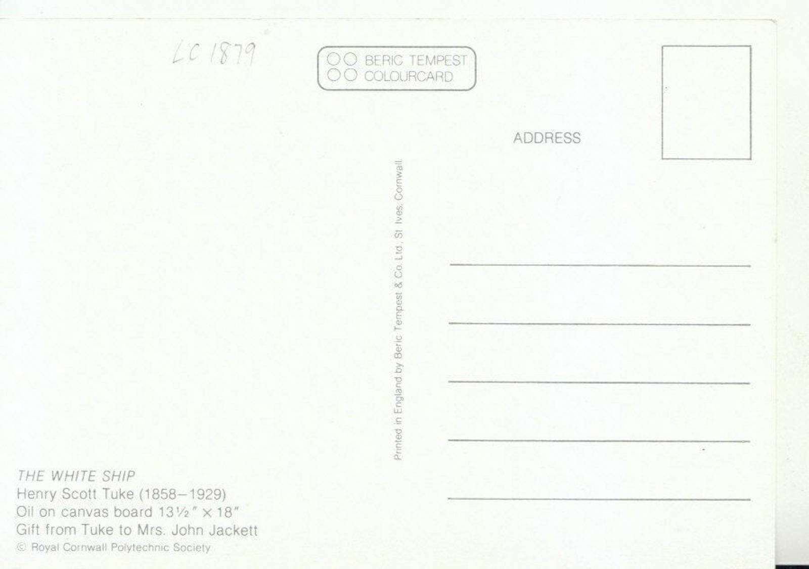 Postcard Description: Sailing Postcard - The White Ship, Henry Scott Tuke Oil On Canvas Board - Gift From Tuke To Mrs John Jackett