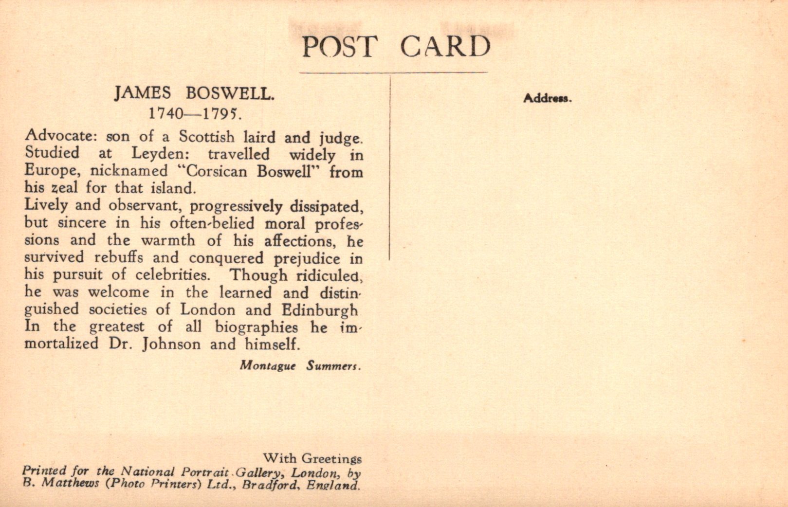 This is an Art Postcard - Painting of James Boswell. Artist Sir Joshua Reynolds SW19503